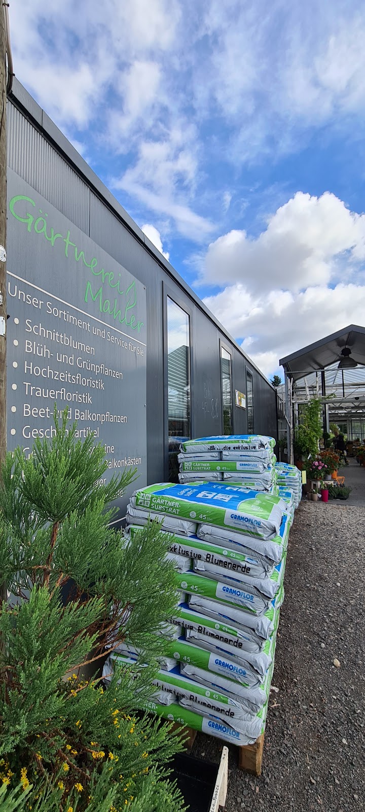 Bei Mahlers findet man alles was das Pflanzen und Blumen Herz begehrt. Sehr nette Verkäuferinnen und eine gute Beratung. Wir kaufen gern dort unsere Geburtstags Sträuße die ganz frisch gebunden werden.