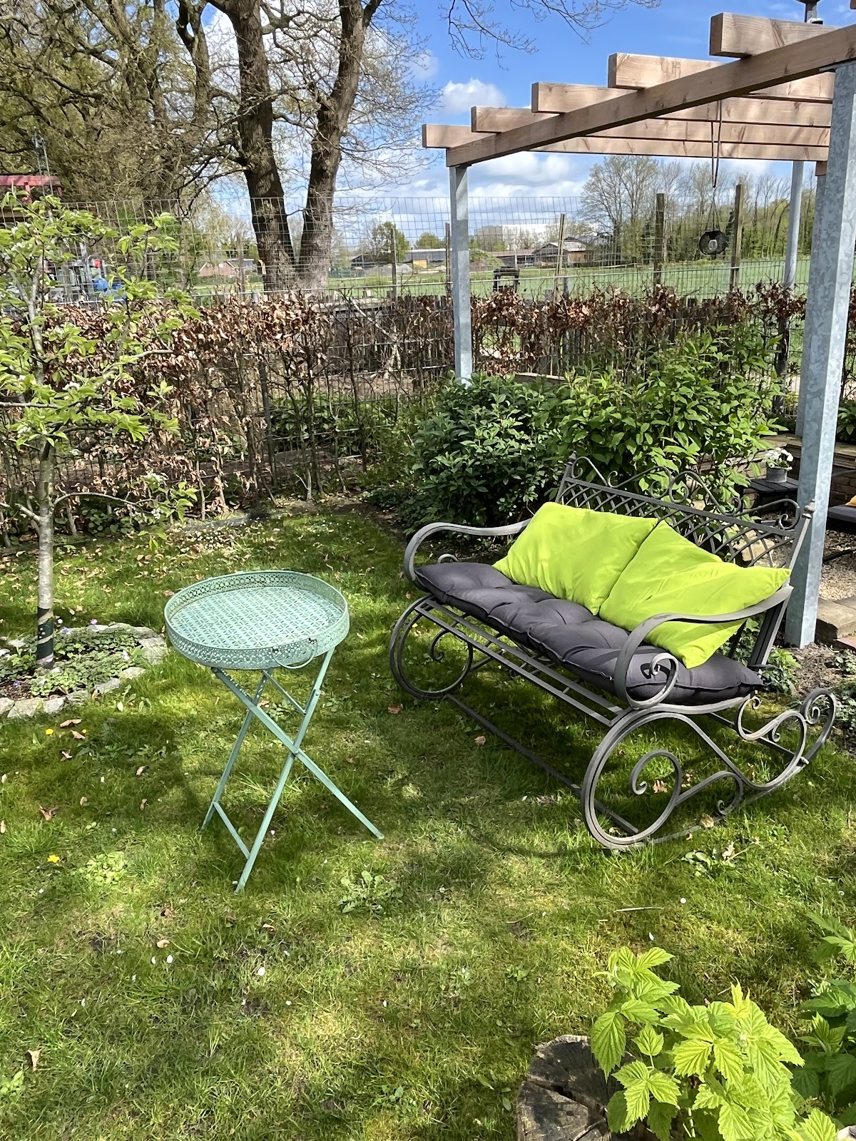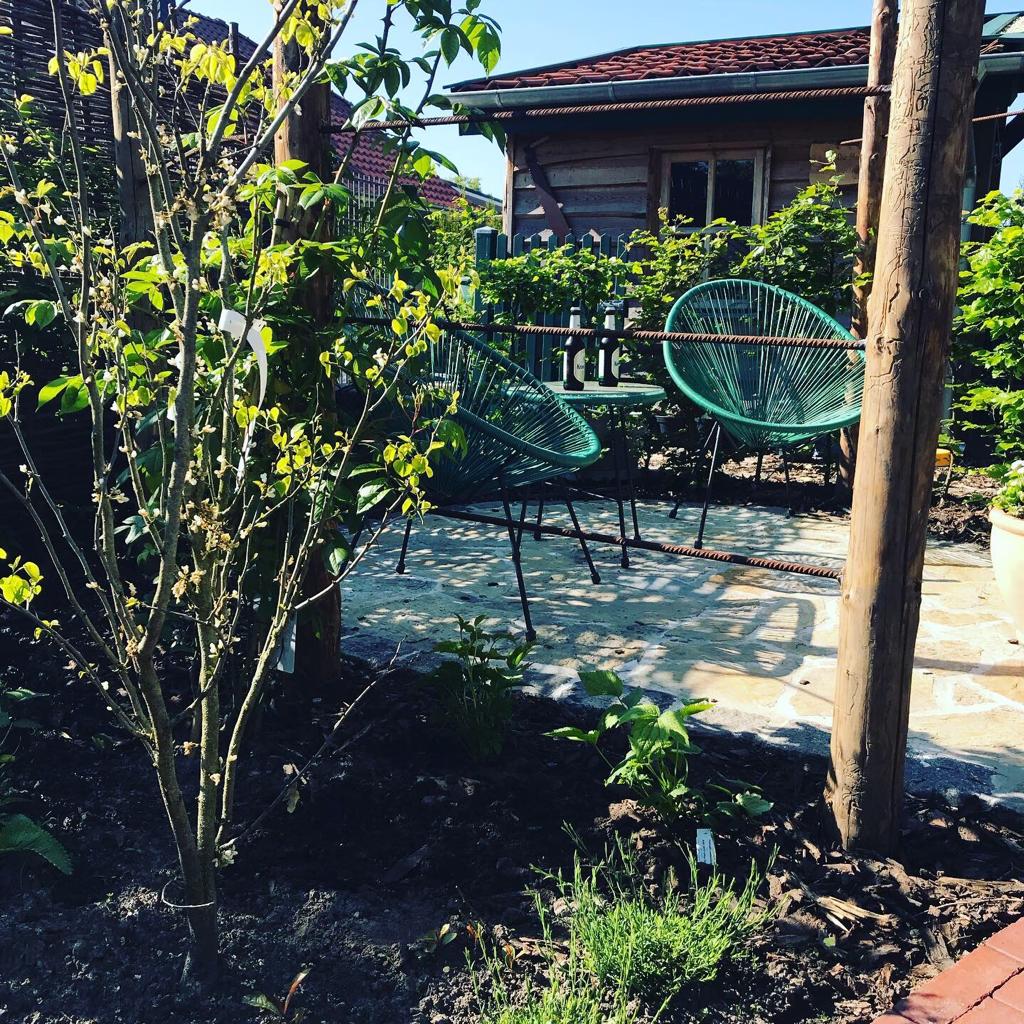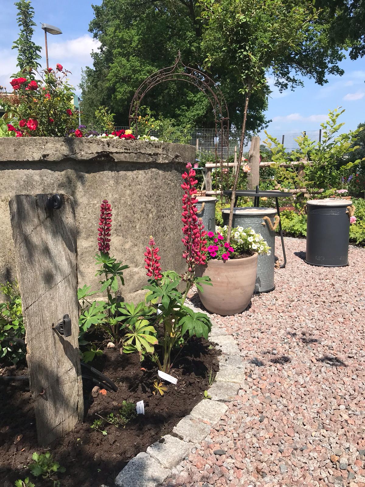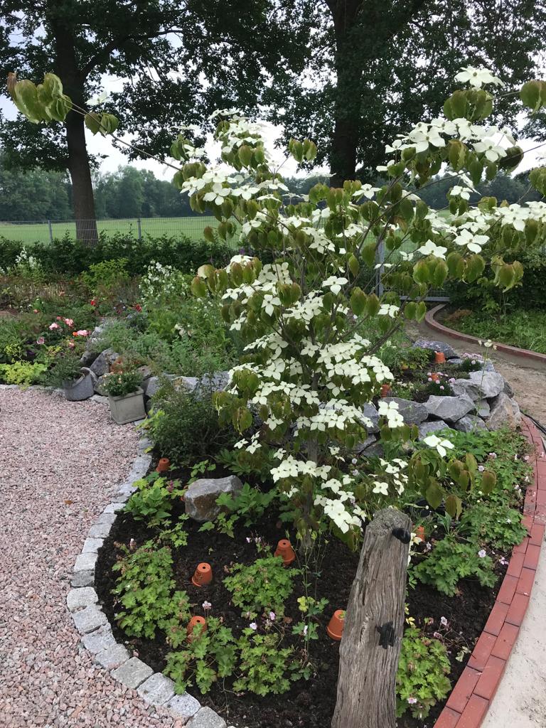 Herrlich angelegter Garten mit kleinen Nischen mit Sitzgelegenheiten, die geschmackvoll eingerichtet sind und umgeben von vielen hübschen Blumen und Pflanzen und kleinen Schildern mit netten Sprüchen. Selbstbedienung mit selbstgebackenen Kuchen und diversen Getränken , Zeitschriften und Honig zu kaufen. Alles gemütlich und das beste ist die Toilette mit Musik von.....Ha Ha das verrate ich nicht- selbst einen Besuch machen und dann könnt Ihr lachen!!!!