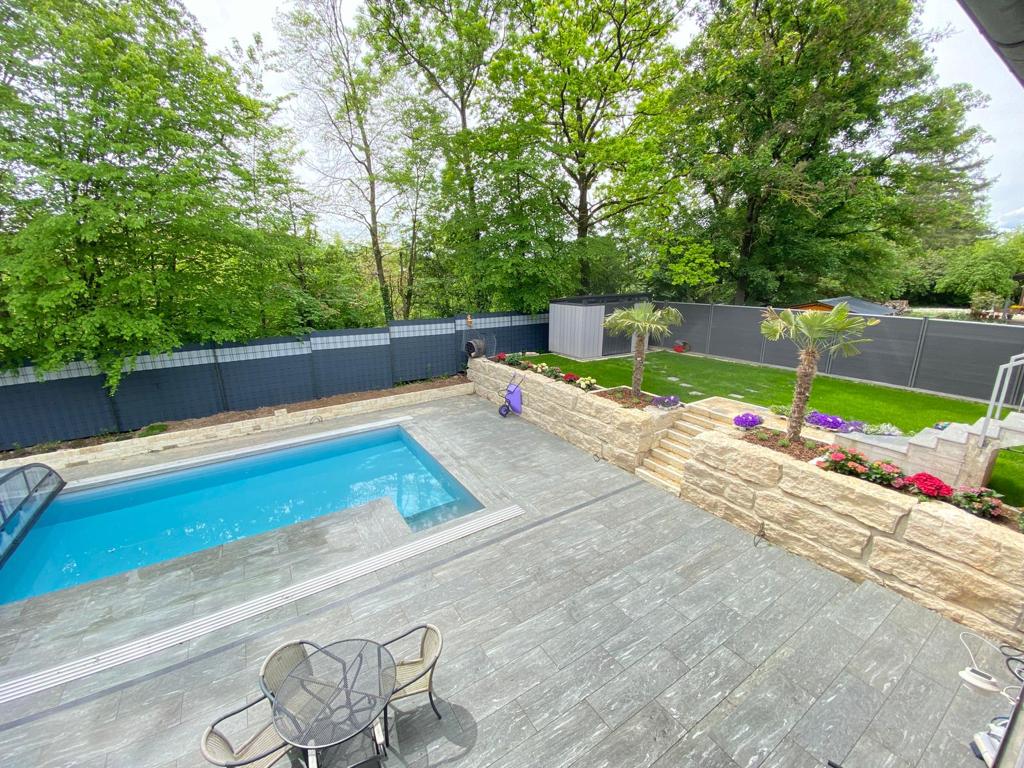 Dank Euch haben wir einen wunderschönen und gelungenen Garten mit funktionsfähigem Pool! Was zuvor eine Katastrophe war (siehe vorher Bild), wurde vom zuverlässigem Manaj Team bestens in ein Paradies umgewandelt. Insbesondere die Natursteinwand hätten wir uns nicht schöner vorstellen können. Hinzukommend wurde unser Pool kernsaniert und wieder in Betrieb gebracht. Manaj Bau können wir nur wärmstens im Bereich Landschaft- und Gartenbau, sowie auch in unzähligen Bereichen der Erdarbeiten weiterempfehlen!