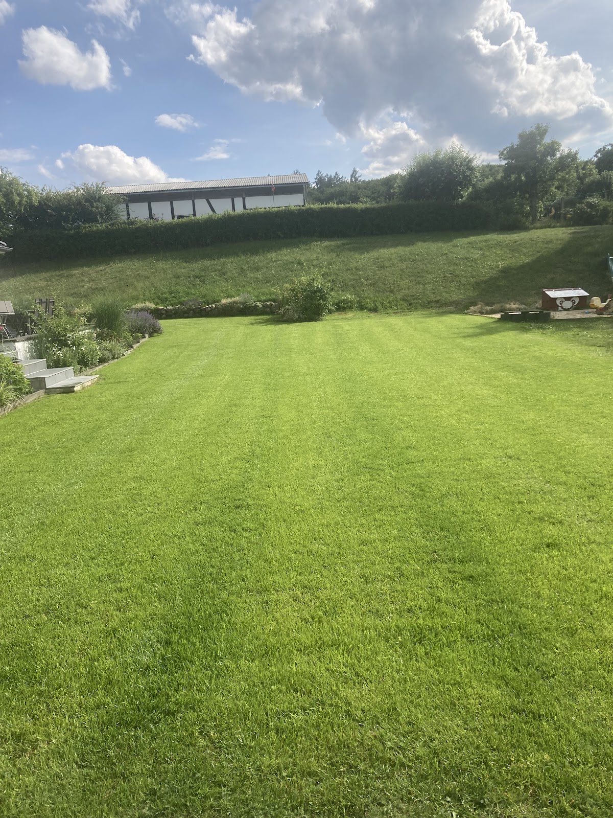 Endlich sieht der Rasen langsam gut aus... Von der ersten Kontaktaufnahme bis zur Fertigstellung einfach ein Traum. Schnelle, kompetente Beratung vor Ort...schnelle Umsetzung aller Wünsche....selbst Fragen oder kleinere Änderungen wurden auch im Nachgang bereits nach wenigen Tagen persönlich vor Ort besprochen und umgesetzt. Der Rasen ist noch nicht perfekt, aber wenigstens liegt es nicht mehr an der mangelnden Bewässerung 😀 Und der Hund ist auch begeistert und liegt endlich auf dem Rasen. Egal ob Brunnen oder Hunter Bewässerungssystem....hier ist man definitiv richtig. Kompetenz, Erfahrung, Professionalität...faire Preise, Qualität und ein super Service. Ich bin mehr als zufrieden und kann hier bedenkenlos meine Empfehlung aussprechen. Noch einmal ganz lieben Dank für die tolle Arbeit 🫶