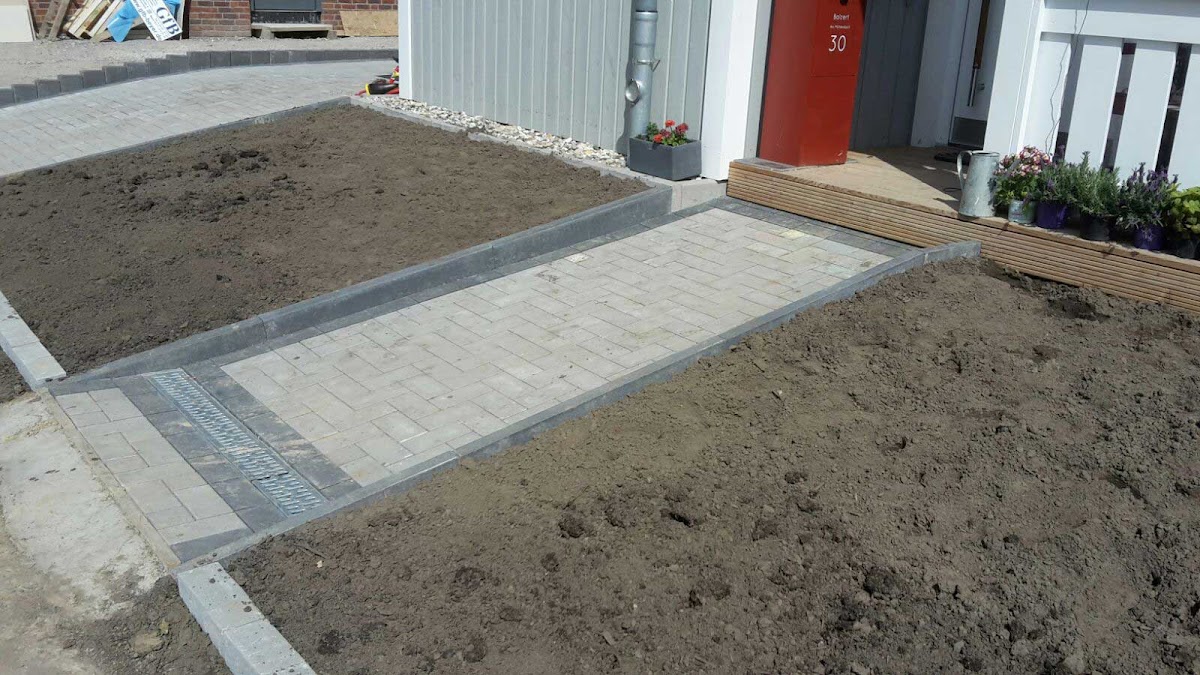 Ein sehr nettes angenehmes Team hat an unserem Neubau die Einfahrt gepflastert und den Vorgarten mit dem Weg zum Haus angelegt. Das ist jetzt knapp drei Jahre her und bis jetzt ist das Pflaster tipptopp in Schuss. Wir konnten uns sogar vor Ort noch verschiedene Verlegemuster angucken, da hat uns ein Mitarbeiter Proben gelegt und dann haben wir uns entschieden. Von unserer Holzterrasse hinter dem Haus habe ich leider kein Bild, die ist auch schön. Die netten Mitarbeiter der Firma Borsch möchte ich nochmal besonders loben, weil es wirklich gut ist, wenn die Leute, die einige Wochen jeden Tag so dicht am Haus arbeiten so unkompliziert und freundlich sind, wie diese Jungs!