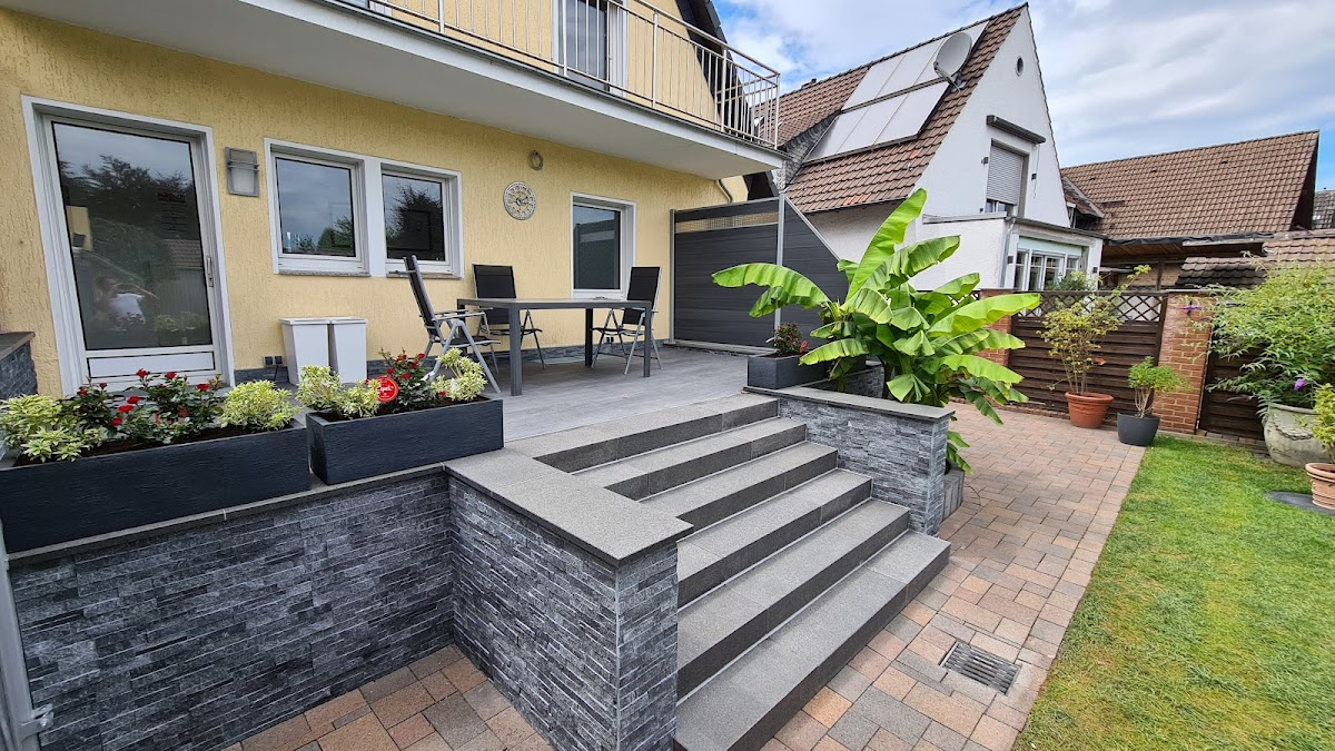 2021 Hof gepflastert und Vorgarten neu gestaltet. 2023 Terasse, Weg und Kellertreppe mit keramischen Platten erneuert. Bestehende Teichanlage umgestaltet. Schönes Ergebnis, saubere Arbeit von dem netten und kompetenten Team. Weitere GaLa-Arbeiten jederzeit gerne wieder mit Firma Hammer!