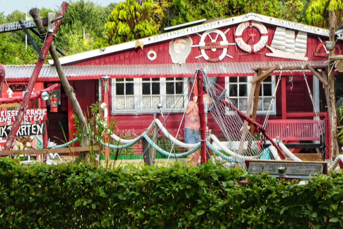 Ganz schön runtergerockter Schrebergarten. Was für einen Schrott da teilweise gebaut wird und warum sowas erlaubt wird, ist mir schleierhaft. Die Lage dort direkt am Kanal und Freibad ist sehr schön