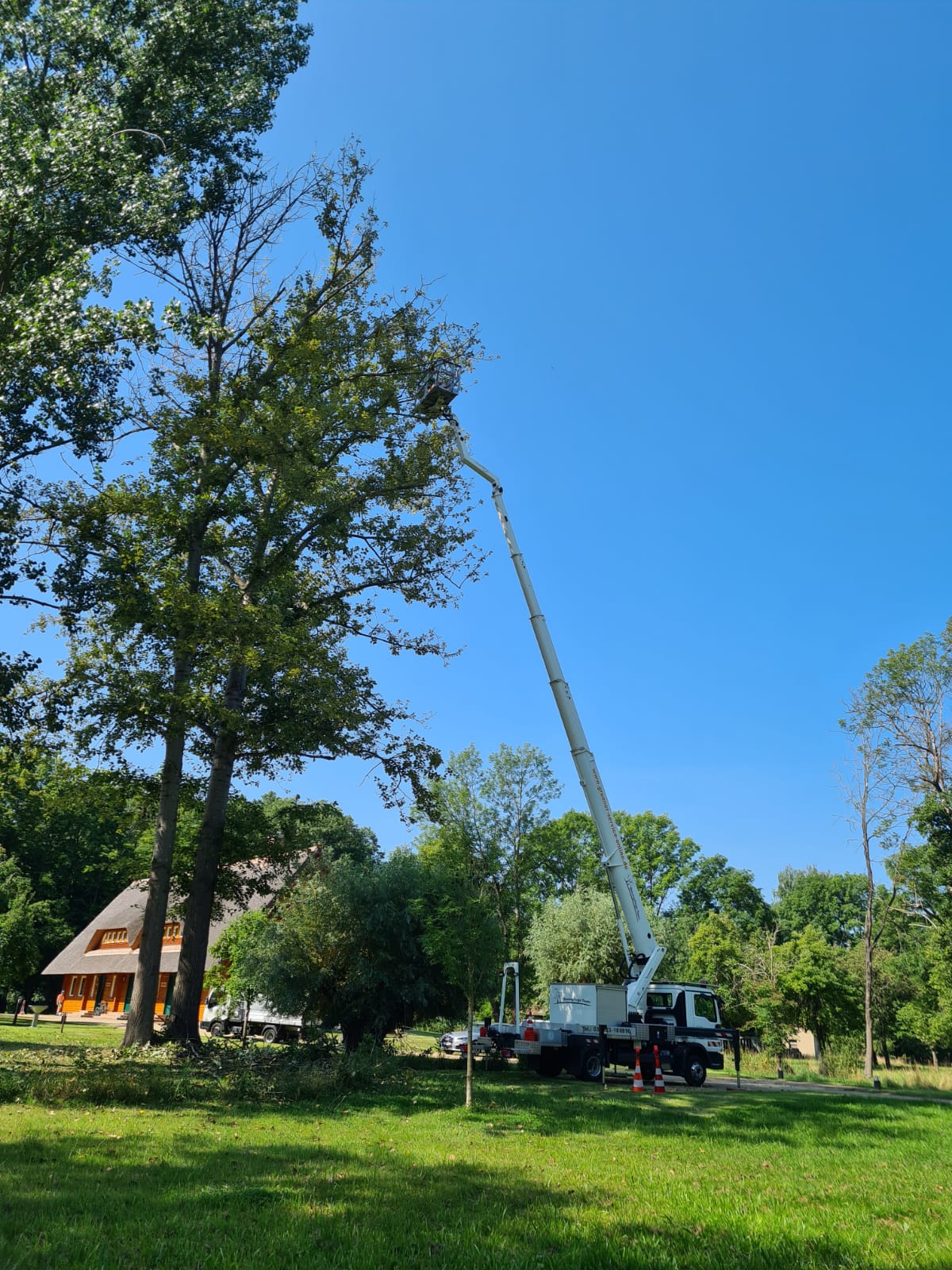 Die Firma Grüner Service GmbH hat auf unserem Grundstück 4 Bäume mit einer Höhe von ca. 15 m gefällt. Da die Bäume sehr dicht an den Gebäuden standen, wurden diese mit Einsatz einer Hebebühne stückweise abgetragen. Nach einem fachkundigen Vorgespräch vor Ort erfolgte der Einsatz wenige Tage später zum vereinbarten Termin. Mit guter Technik und zwei fleißigen Mitarbeitern wurde die Leistung innerhalb eines einzigen Tages abgeschlossen. Besten Dank für die professionelle Arbeit! Wir können diese Firma uneingeschränkt empfehlen.