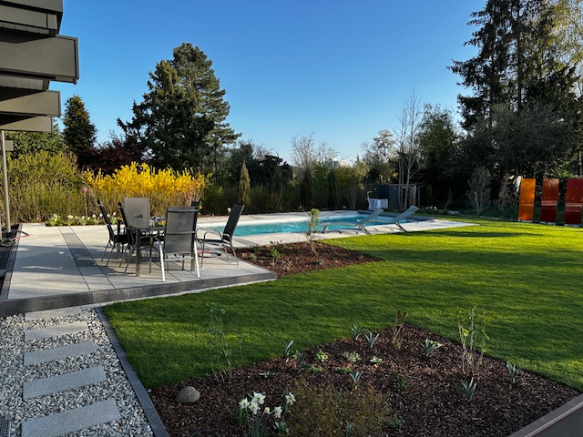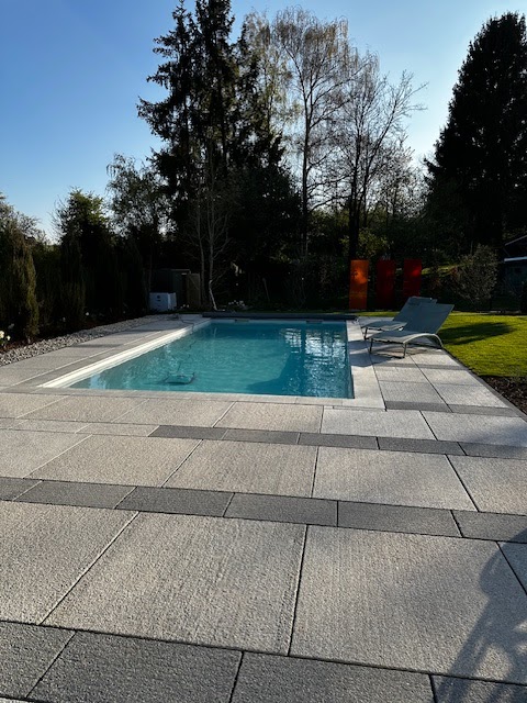 Auf Empfehlung sind wir mit der Firma Kleibaum in Kontakt gekommen und sind sehr, sehr zufrieden! Nach Planung der Außenanlagen mit einer Landschaftsarchitektin haben wir mit der inhabergeführten Firma Kleibaum einen wirklich tollen Betrieb für die Umsetzung gefunden. Alles hat gepasst, von Anfang (Angebot fair, Beratung gut, viele tolle Hinweise) bis Ende (Spitzen-Ausführung, alles Zusatz-Wünsche wurden erfüllt, viele Zusatzarbeiten erledigt)! Andreas und Alex und die Jungs haben exzellente Arbeit geleistet trotz der komplizierten Gegebenheiten. Der Fuhr- und Maschinenpark hat uns sehr beeindruckt, für alle Widrigkeiten hatten sie stets das Material und die Maschinen vor Ort, eine präzise und sorgfältige Ausführung auf den Zentimeter genau! Die Nachbargrundstücke, die Straße und auch der Gehweg vorn wurden stets mit Sorgfalt behandelt, so dass keine Nach- bzw. Ausbesserungen notwendig waren. Highlights für uns waren neben der Treppenanlage die große Terrasse und der Pool, welche so präzise gesetzt wurde, dass wir die Platten ohne Verschnitt verlegen konnten! Die vielen hundert Meter Kabel, Wasserleitungen, Poolrohre und auch Abwasserrinnen liegen dort, wo sie sein sollen … Vielen Dank & Chapeau!