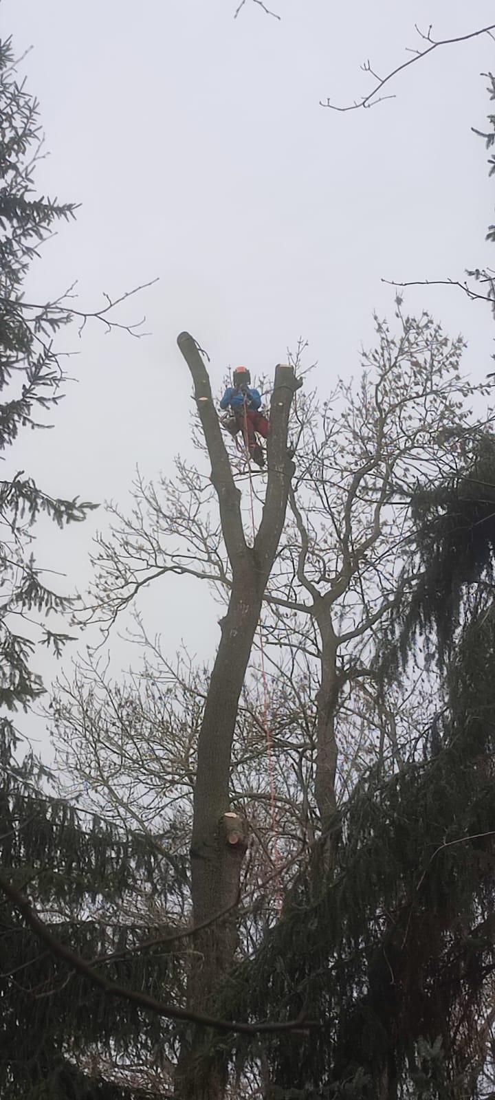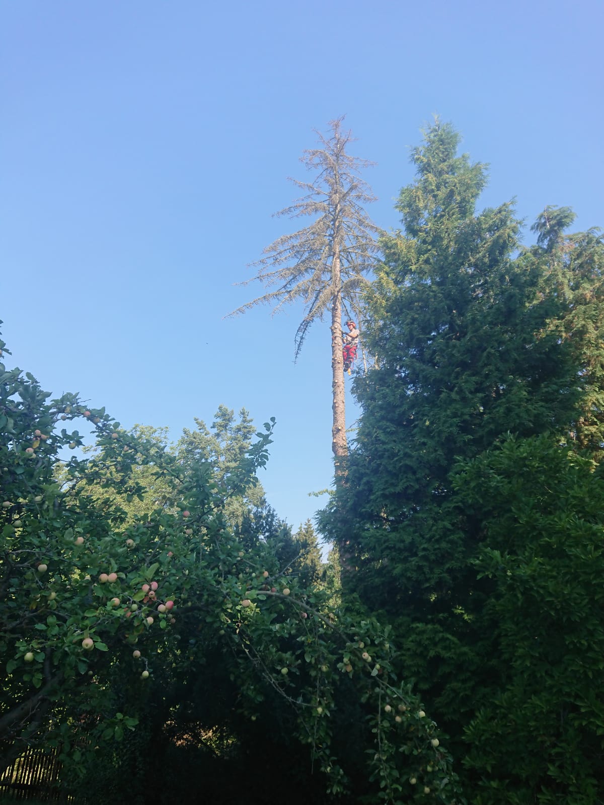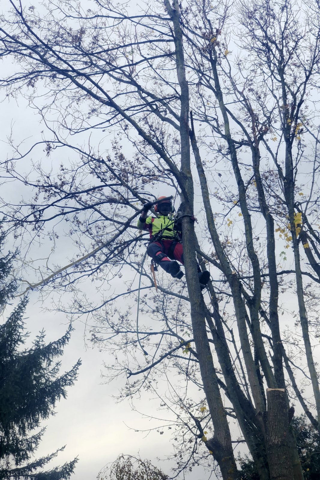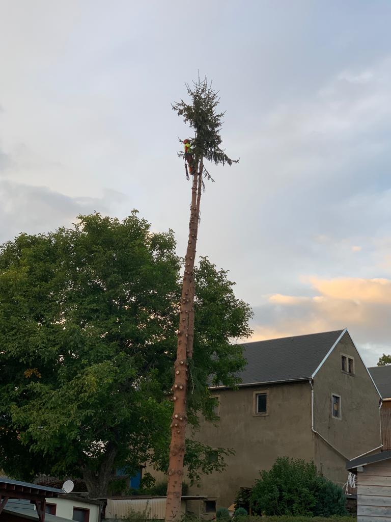Zuverlässig, sicher & freundlich! Das Abtragen von Bäumen/Baumspitzen sowie Totholzverschnitt auch in unwegsamen und engen Bereichen macht ihm Freude.