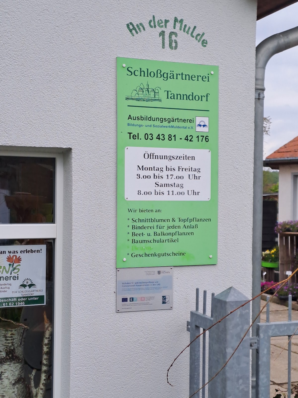 Eigentlich war mein heutiges Ziel das auch an der Mulde, schon durch mich rezensierte Wasserschloss Podelwitz, zu der schönen Kleinstadt Colditz gehörendende, für den Kanutourismus als ideales Highlight geltendes Ausflugsziel der Grimmaer, Döbelner, aber auch Leipziger und Dresdener. Ich habe sogar schon Preußen aus Berlin gesichtet! Um euch mit meinen Schachtelsätzen nicht zu sehr zu langweiligen, zurück zu der Schlossgärtnerei Tanndorf. Nicht nur, daß mein halbes Heimatdorf dort ihre für Garten und Hof, aber auch Friedhof holen, bei ca. 60 nicht übertrieben, ich hatte auch beruflich mit der Gärtnerei 15 zu tun. Das Bildungs- und Sozialwerk , (BSW) gab in der Schlossgärtnerei Spätaussiedlern aus den Ländern der ehemaligen Sowjetunion die Chance eines Berufseinstiegs im Freistaat Sachsen Ich betreute die Spätaussiedler oder Russlanddeutsche über den langen Zeitraum von 1991 bis 2015 als Regionalkoodinator. Da echte Freundschaften entstanden, ich werde noch heute, fast 10 Jahre nach meiner, heute schreibt im Lebenslauf, beruflichen Umorientierung, von den inzwischen im gesamten Altkreis Muldental ansässigen Spätaussiedlern erkannt duze mich mit den Mitarbeiter*Innen des BSW, bis hin zum Chef So, jetzt geht es Auto und ab nach Weimar, hoffentlich stimmen die Unwetterwarnungen für diesen Bereich nicht ganz, über 10 verletzte Menschen durch Blitzschlag reichen in diesem ( Dresden, Elbwiesen). Wenn alles gut 👍 läuft, kommen meine nächsten Berichte aus Weimar!