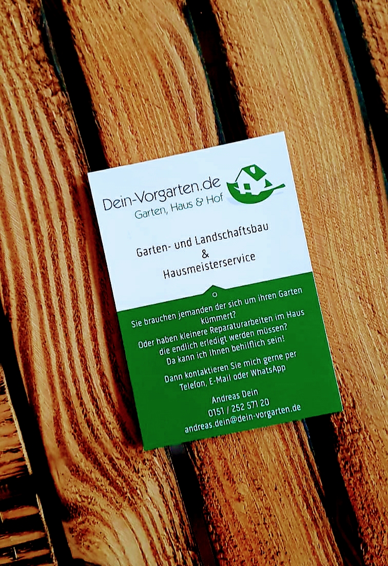 Sehr nett, kompetent und absolut zuverlässig. Dein-Vorgarten kann ich, ohne mit der Wimper zu zucken, weiterempfehlen.Die Arbeit wurde im angegebenen Zeitraum erledigt.Die "Baustelle" wurde sehr sauber verlassen,d.h. es wurde selbst der kleinste Steinbrocken,Holzsplitter eingesammelt.