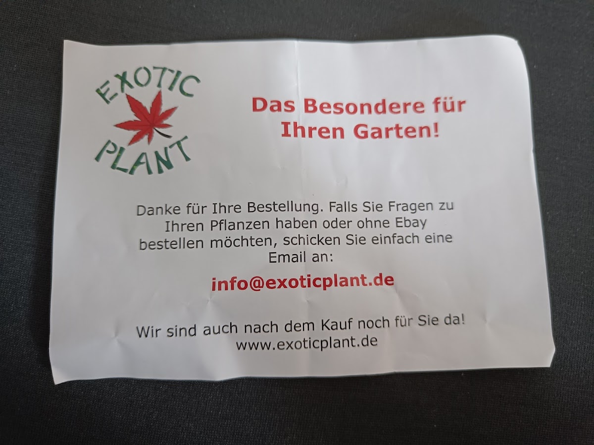 Besondere Pflanzen zu sehr guten Preisen! Herr Specker ist sehr sympathisch, antwortet schnell und bietet einen guten Service. Der Versand der wirklich großen Pflanze hat super geklappt. Die Pflanze ist wohlauf bei mir angekommen und bereitet mir viel Freude. Ich kann "Exoticplant" ehrlich empfehlen.