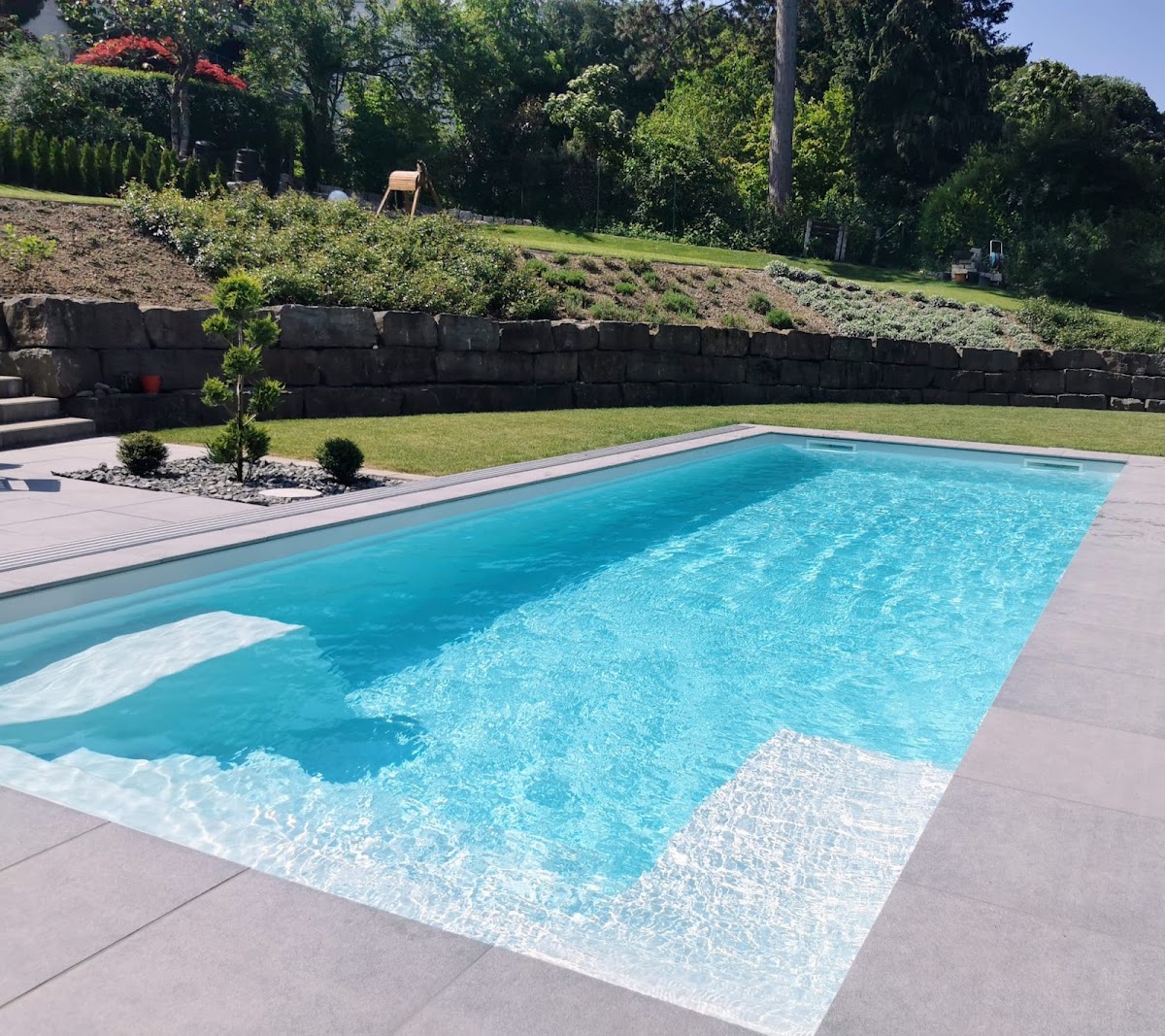 Ab dem ersten Gespräch mit Geschäftsführer Marco Gropper auf unserer noch alten Terrasse haben wir uns stets gut beraten und gut aufgehoben gefühlt. Unser Projekt startete mit dem Wunsch nach einem Pool irgendwo auf unserem Grundstück. Nach Vor-Ort-Besichtigungen durch Marco Gropper und diversen Gesprächen und Planungen haben wir dann innerhalb kürzester Zeit auch professionelle, animierte Visualisierungen mit verschiedenen Positionierungen des Pools erhalten. Wir haben uns schlussendlich dafür entschieden, den Pool in Verlängerung unserer Terrasse zu setzen mit einer abschließbaren Schiebehalle. Mit dieser Schiebehalle haben wir die Sicherheit gewährleistet, dass uns keine ungewollten Besucher in den Pool fallen als auch die Badesaison für uns Nutzer immens verlängert. Unser Pool ist die perfekte Inszenierung in unserem Garten geworden. Geschäftsführer Marco Gropper und sein Team arbeiten hoch professionell, akkurat, in bester Qualität und sauber. Sämtliche Wünsche des Bauherrn auch während der Ausführung wurden erfüllt und ohne Probleme im Konzept umgesetzt. Durch sehr präzises Arbeiten und Mitarbeiter, die auch die Details auf einer Baustelle nicht übersehen, hat uns die Garten- und Pool Gropper GmbH einen Traum erfüllt, den wir nur jedem von euch wünschen können. Neben dem Einbau des eigentlichen Pools ist Marco Gropper und sein Team auch mit allen Arbeiten im Bereich GALA-Bau bei uns tätig gewesen. Höhenanpassungen, alte Terrassenplatten ausbauen, neue Keramikplatten verlegen, Sichtschutz anbringen und Bepflanzung war im Gesamtumfang der Arbeiten inbegriffen. Alles wurde sehr gut und für uns überaus zufriedenstellend gemacht. Nicht zu vergessen ist auch die Belastbarkeit der Termine. Alle zugesagten Termine wurden eingehalten und schlussendlich so pünktlich ausgeführt, dass wir genau zur Badesaison (wie im Erstgespräch versprochen) in unseren Pool hüpfen konnten. Wir können die Garten- und Pool GmbH Marco Gropper aus Ebenweiler nur empfehlen. Weiter so Männer! Ihr macht alle eure Kunden sehr, sehr glücklich! PS: auch im Servicebereich ist Marco Gropper und sein Team eine starke und vertrauensvolle Unterstützung. Die Serviceleistungen im laufenden Betrieb sind ebenfalls hervorragend.