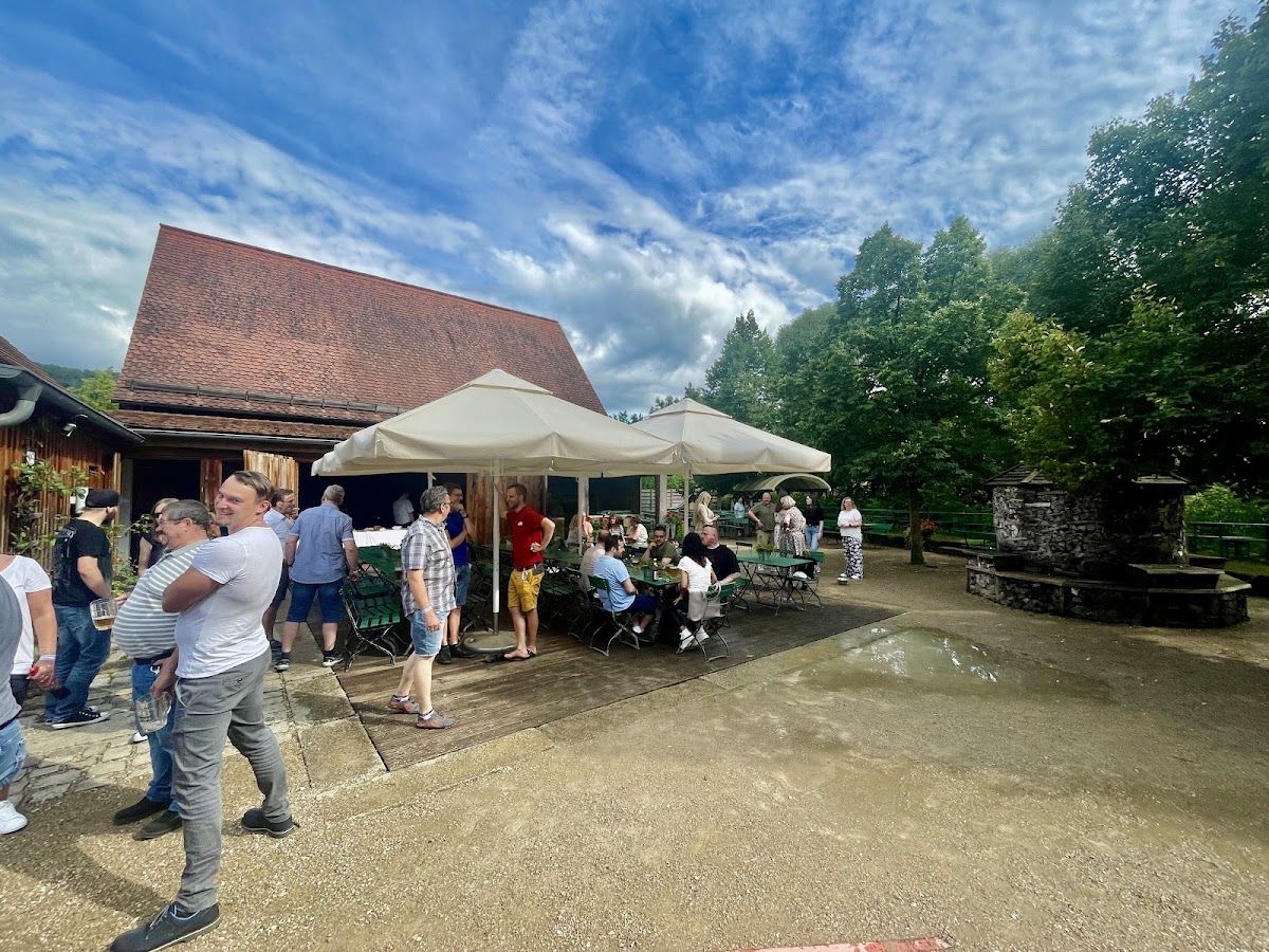 Sehr schöner Biergarten der zum verweilen einlädt. Es gibt viel Auswahl an Leckereien und natürlich frische Getränke. Das Bier schmeckt hervorragend. Service war sehr gut und die Toiletten sauber