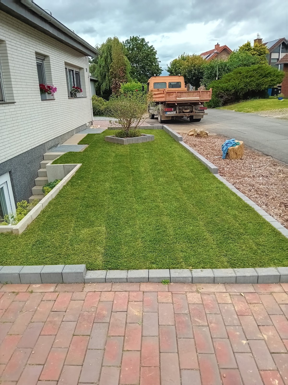 Sehr zufrieden mit der Arbeit! Die Männer wissen was sie tun, vom Rollrasen verlegen bis hin zum Pflastern von Beliebigen Flächen.
