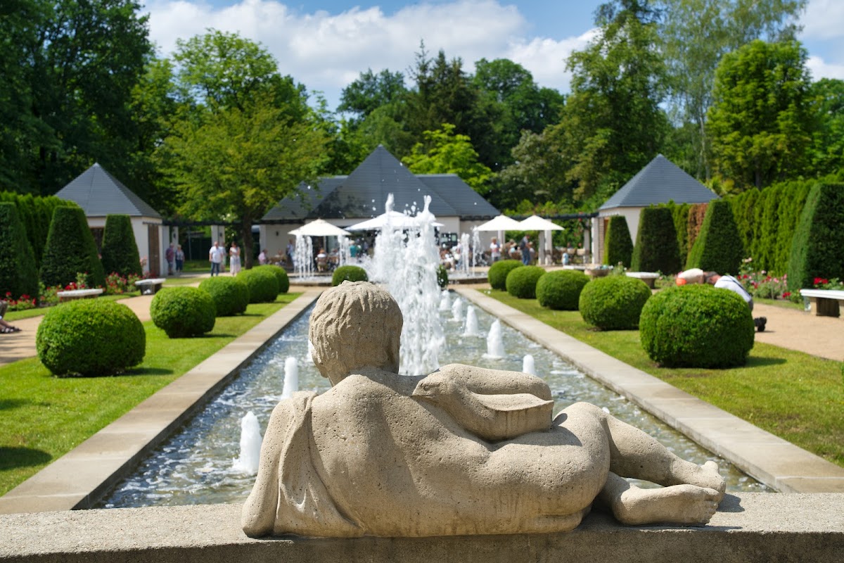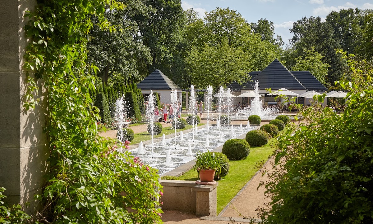 Eine sehr schöne Anlage. Es gibt ganz unterschiedliche Bereiche und es lohnt sich jeden Bereich zu erkunden. Wer eine Pause braucht, der findet bei den Wasserspielen, die in kurzer Zeit immer wieder neu anfangen, eine sehr gute Möglichkeit. Bei dem kleinen Imbiss bekommt man einen sehr sehr guten Kaffee. Dazu gibt es Kleinigkeiten wie Kuchen oder Pommes. Auch Roseneis kann man probieren. Für den größeren Hunger geht es in Richtung Besucherzentrum zu dem gegenüberliegenden Restaurant. Hier wartet eine grosses Angebot an Speisen. Die vielen Bereiche machen den Rosengarten außergewöhnlich und dafür wurde er auch ausgezeichnet.
