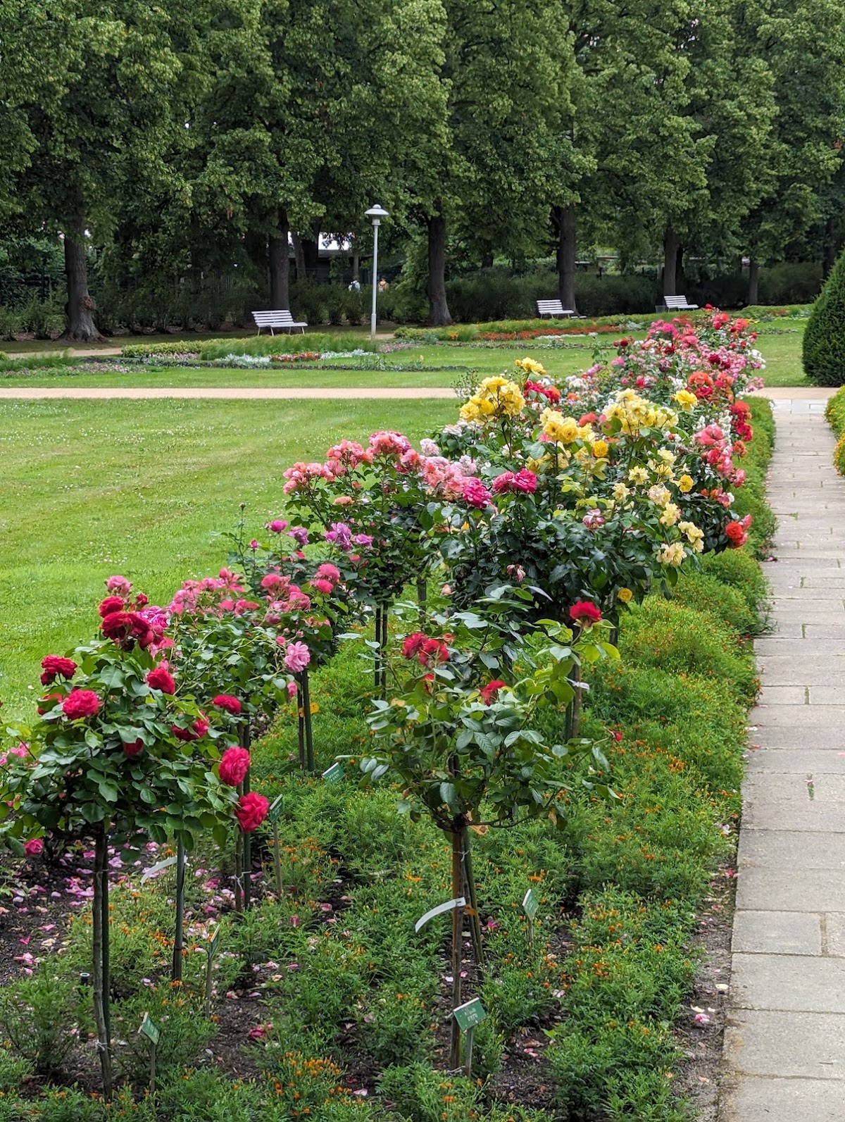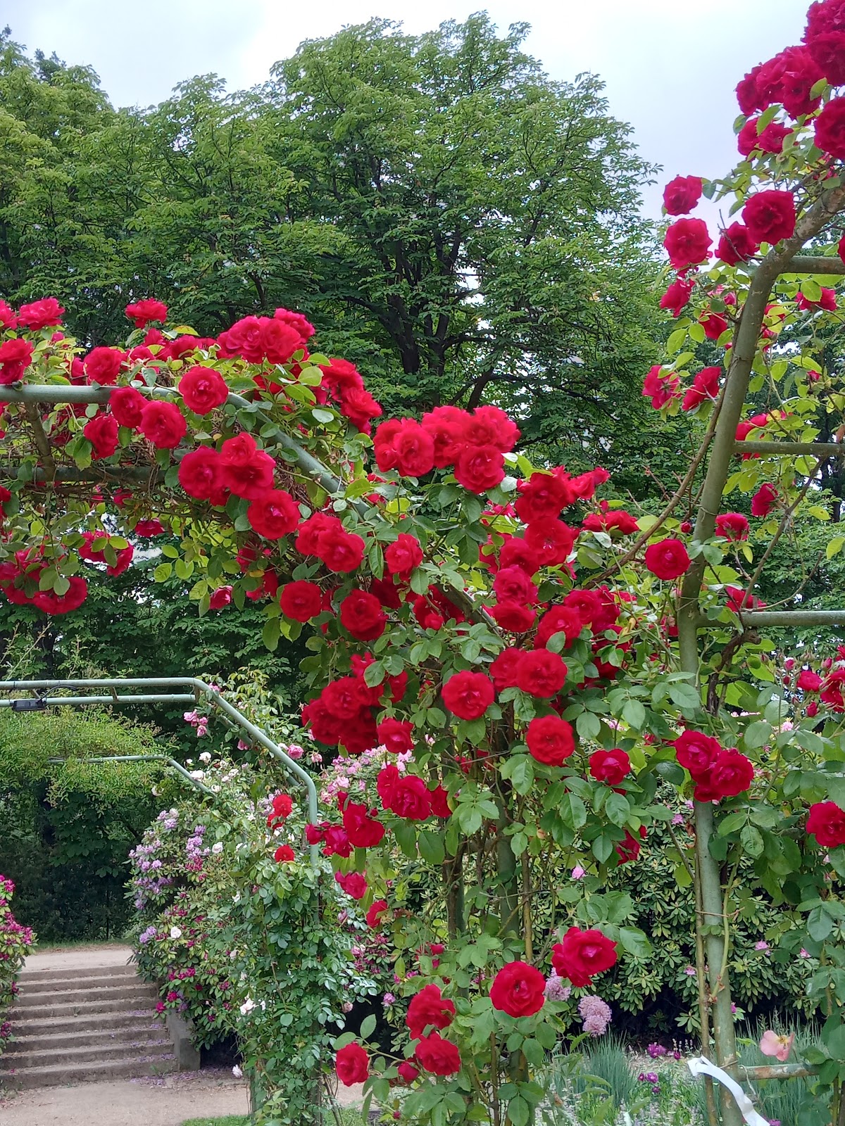 Eine sehr schöne Anlage und eine Empfehlung für alle Gartenfreunde. Starker Regen und besonders der Hagel in den vorangegangen Tagen haben den Rosen sehr zugesetzt. Nutzen sollte man unbedingt die Möglichkeit einer Führung! 10 Gärtner versuchen die große Anlage in Schuss zu halten. Eine Herausforderung-