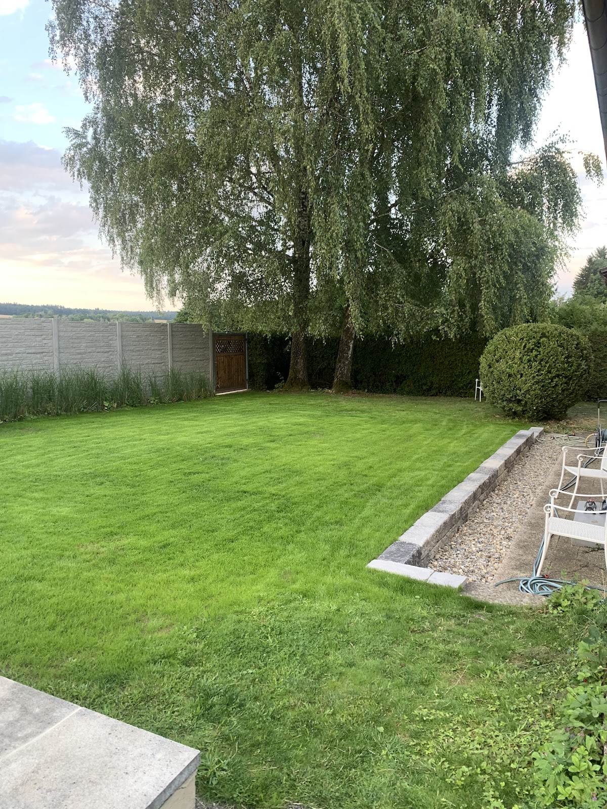 Wir sind mit der Arbeit sehr zufrieden. Die Firma arbeitet zuverlässig und schnell sowie fachlich einwandfrei. Auch das Preis-Leistungs-Verhältnis haben wir als absolut ok empfunden. ( Anlegen einer ebenen Fläche- Ausgleich von Höhenunterschieden im Erdreich und Neuansaat von Rasen sowie Errichten einer Stützmauer und eines schotterstreifens.)