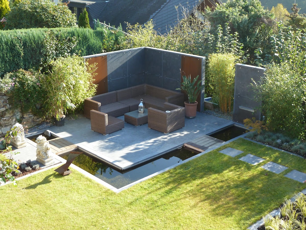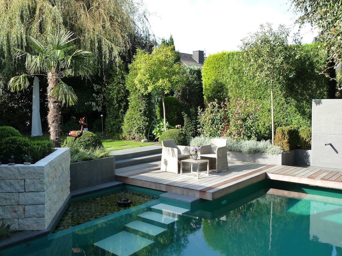 Nachdem wir heute wieder, wie in jedem Jahr, Stunden mit der Reinigung unseres "innovativen" Wasserbeckens, welches durch seine unsichtbare Tiefe angeblich immer klares Wasser behält, erlaube ich es mir, nach 10 Jahren Richter Garten eine Bilanz zu ziehen. Die Innovation funktioniert nicht. Wir haben die komplette Anlage mit chinesischem Blaustein ausgestattet. Etliche qm. Hier platzen seit Jahren ganze Fragmente aus. Die Bepflanzung haben wir inzwischen an ganz vielen Stellen verändert, da der Standort z. B. eines Zierahhorns falsch gewählt wurde. Unser Wunsch war es, einen pflegeleichten Garten zu erhalten. Das funktionierte leider mit den geplanten Beet Rosen nicht. Regelmäßiger Blattlausbefall und Schnitt... Diese haben wir schon im 2.Jahr ersetzt.... Fazit :Planung ja, Ausführung nie mehr!