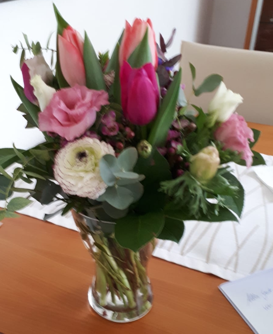Vielen lieben Dank für den tollen frischen Strauß :-) Meine Tante hat sich sehr darüber gefreut... 70 Geburtstag... Abwicklung und Anlieferung hat super geklappt da wir aus Nord Hessen kommen... gerne wieder.. Renate u Tanja 4.2.22