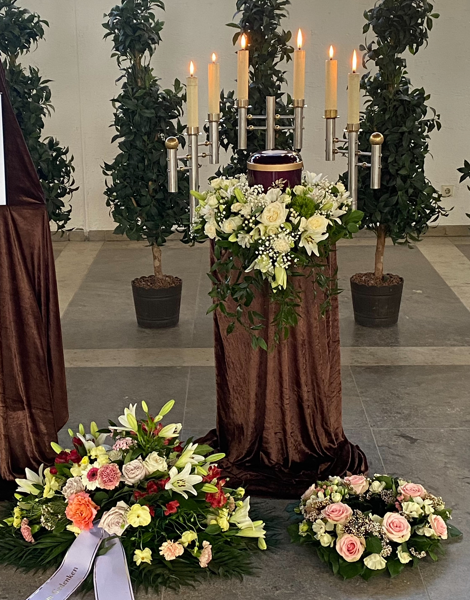 Wir haben einen Urnenkranz, einen Kranz für ein Urnen Grab und ein kleines Gesteck bestellt! Es wurde alles perfekt umgesetzt und alle Freunde und Verwandte waren alle sehr begeistert, Dankeschön für die tollen Prachtvollen Blumen.