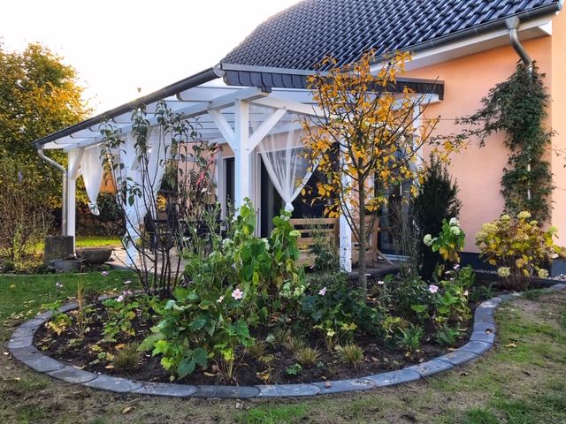 Fr. Feucht hat bei uns drei Beete um die Terrasse geplant. Sie hat tolle Ideen und Vorschläge zur Beetplatzierung und Beetführung gemacht. Auf diese Formen wäre ich nie gekommen und allein davon bin ich schon ganz begeistert. Die Pflanzenwahl, passend zur Nordseite hat sie nach Vorgesprächen und Bildmaterial für mich perfekt umgesetzt. Tipps zur Bodenverbesserung, Pflege-und Entwicklungsplan der neuen Bewohner erleichtern mir die Arbeit in Zukunft. Strukturierte, schnelle, sehr kompetente Abwicklung. Bedingungslos Empfehlenswert. Gern wieder.