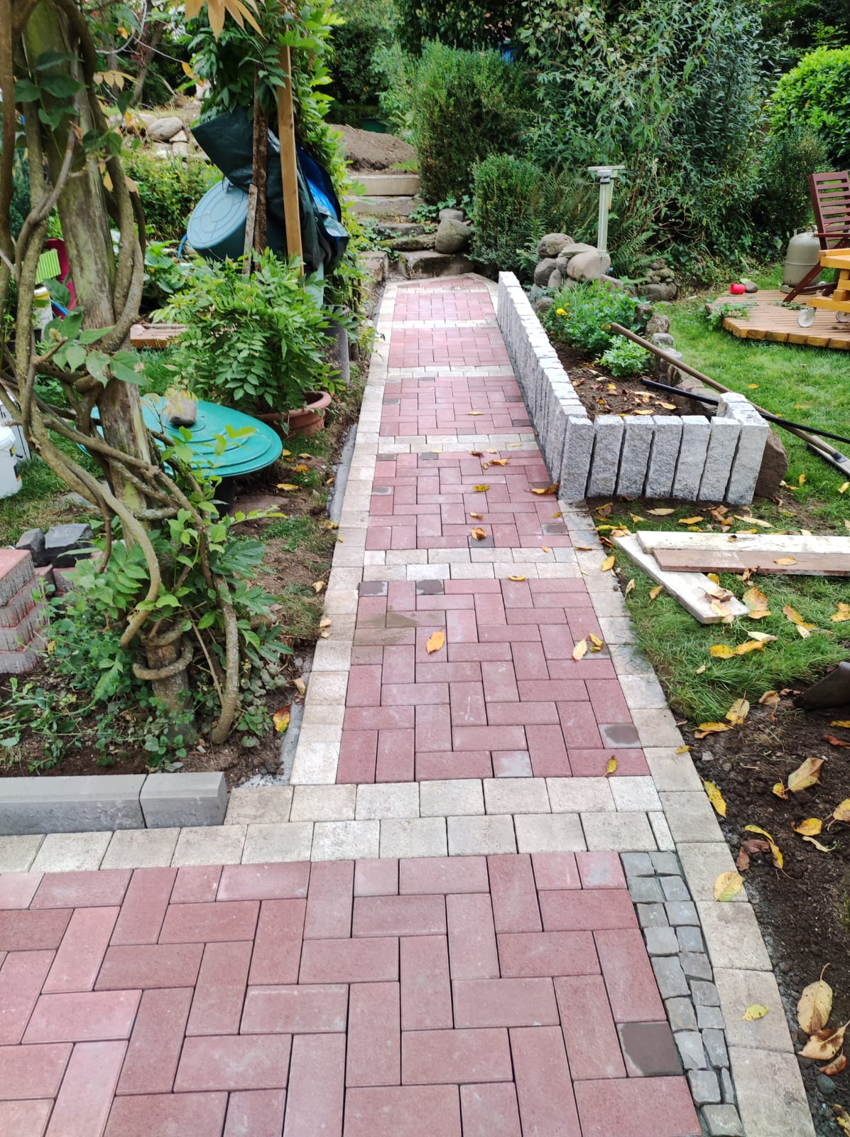 Mit den Pflasterarbeiten an sich waren wir zufrieden. Leider wurde jedoch der gesamte Verschnitt von über 200m2 Pflasterarbeit (mehrere Schubkarren, siehe Fotos) einfach in den Vorgarten gekippt. Uns wurde nach Abschluss des Gewerks zugesagt, dass dieser innerhalb der nächsten 14 Tage abgeholt werde. Auch auf erneute Nachfrage bei Herrn Wühle und erneuter Zusage lag dieser nun knapp ein halbes Jahr bei uns, sodass wir ihn auf eigene Kosten entsorgen mussten.