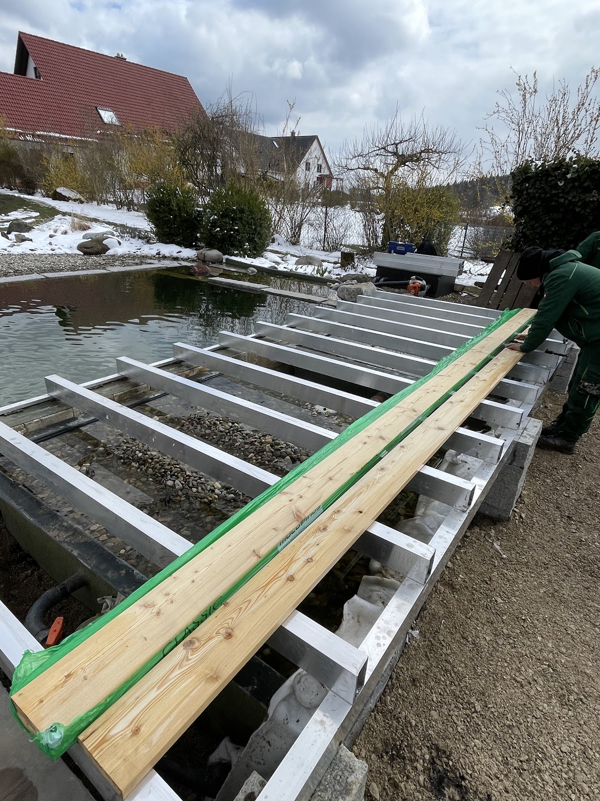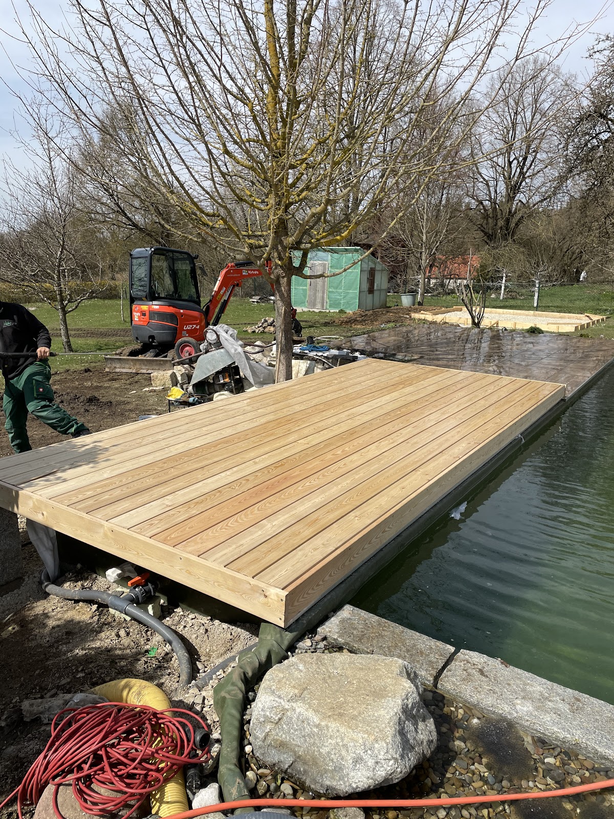 Die Firma Hahn war bei uns um eine Holzterasse über unsere Filterbecken beim Schwimmteich zu bauen. Da diese nicht belastet werden dürfen war eine aufwendige Konstruktion notwendig, welche das Fachpersonal der Firma professionell und sauber ohne Probleme aufbaute. Auch die Verglegung der Holzbretter, sowie das setzen der Natursteinmauer wurde durch die Firma Hahn gewissenhaft erfüllt. Auch auf der Baustelle selbst herrschte gutes Klima zwischen den Mitarbeitern, zu Leerläufen kam es nicht. Professionelle Firma, sehr zu empfehlen!