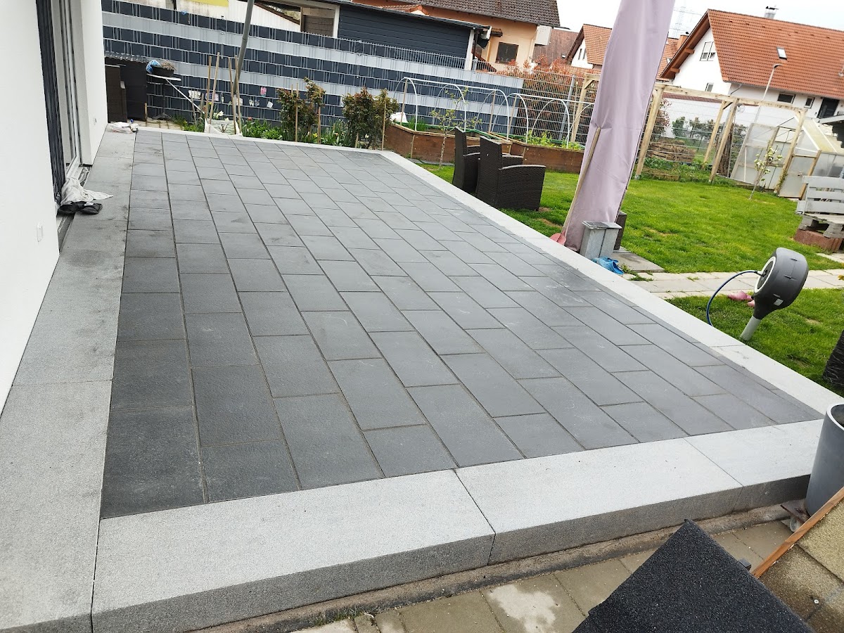 Kevin arbeitet zügig und zielorientiert. Wir waren mit dem setzen von L-Steinen sehr zufrieden! Demnächst kommt die Terrasse dran.