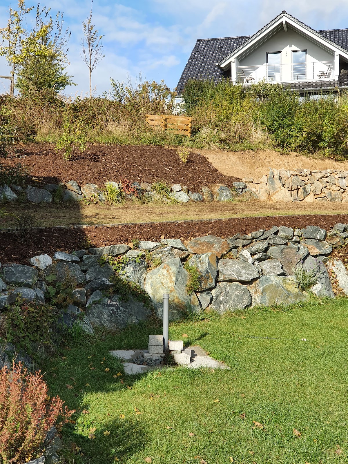 Die Firma Kunzmann hat unser komplettes Grundstück umgestaltet. Es mussten alte Büsche entsorgt, Mauern abgerissen und Pflaster entfernt werden. Weiterhin wurden eine Treppe und zwei Grundstücksmauern instand gesetzt, mit L-Steinen zwei Ebenen modelliert, eine Zisterne eingebaut, ein Sockeldämmung angebracht, eine Terasse verlegt, ein Doppelstabgitterzaun aufgestellt und das Grundstück im vorderen Bereich gepflastert. Das Ergebnis hat unsere Erwartungen übertroffen. Die Firma Kunzmann arbeitete zügig, professionell und zuverlässig. Unvorhergesehne Schwierigkeiten - die bei so einem Projekt nicht ausbleiben - wurden gelöst. Dass das Material auf uns bestellt wurde, hat uns ebenfalls gut gefallen, da wir so alle Arbeitsschritte nachvollziehen konnten. Wenn wir noch mal so einen Umbau durchführen müssten, würden wir sofort wieder die Firma Kunzmann beauftragen. Das Ergebnis kann gerne besichtigt werden. Fragen Sie Herrn Kunzmann nach der Adresse.