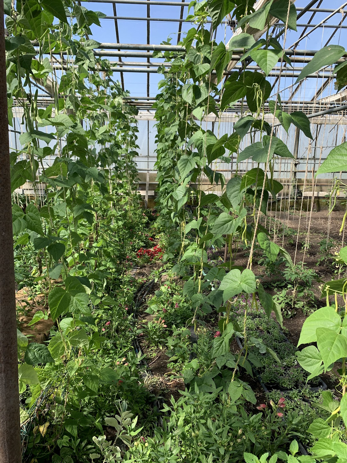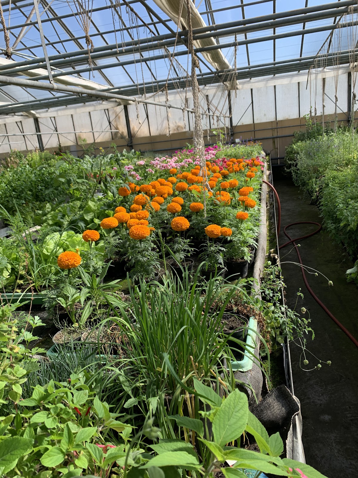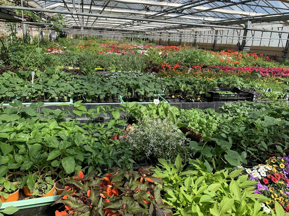 Super Gärtnerei mit frischem Gemüse und schönen Blumen