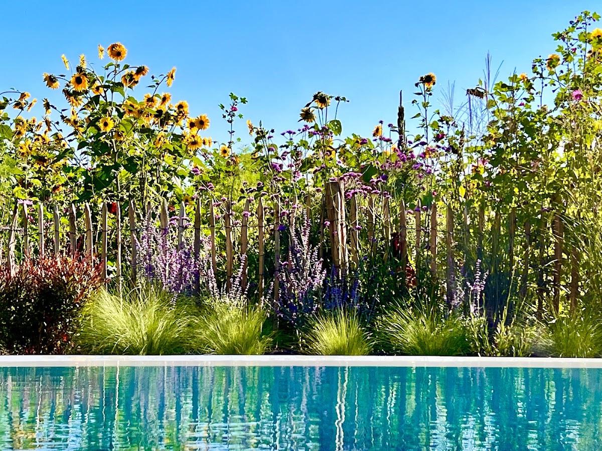 Nach langer Überlegung "Was tun mit den drei Beeten und dem nicht mehr benötigten Sandkasten ohne das sie (wieder) zur Katzentoilette werden?" kam ich auf den Ammerseeer Landschaftsbau und der sehr guten Idee des bereits im Gemeindegebiet Inning angelegten "Straßen und Plätzebegleitgrün", eine sonnenverträgliche und robuste Pflanzenmischung, die das ganze Jahr sehr schön anzuschauen ist durch die sich ergänzenden, zu verschiedenen Zeiten blühenden Pflanzen. Nach sehr kompetenter Beratung und Modifizierung dieser Pflanzung auf die uns zur Verfügung stehender Fläche im Garten ging es auch schon pünktlich und zuverlässig an die Umsetzung. Heraus kam genau das Ergebnis, das ich erwartet hatte. Eine schöne, in den bereits bestehenden 15 Jahre alten Garten integrierte neue Bepflanzung, die den pflegeleichten Nutz-und Grünpflanzen sowie Vogelgarten ergänzt und mit seiner Pflanzenvielfalt in den jetzt vier Beeten das ganze Jahr über Farbtupfer in den Garten zaubert. Ergänzt werden die Beete im Herbst noch durch das Setzen von verschiedenen Zwiebelpflanzen ( Tulpen, Hyazinthen etc.). Durch die Abdeckung der Erde zwischen den Pflanzen mit zu dem Garten passenden runden Kiesel wird auch die im ersten Satz angesprochene Problematik kein Thema mehr sein. Vielen Dank an das engagierte Team vom Ammerseeer Landschaftsbau