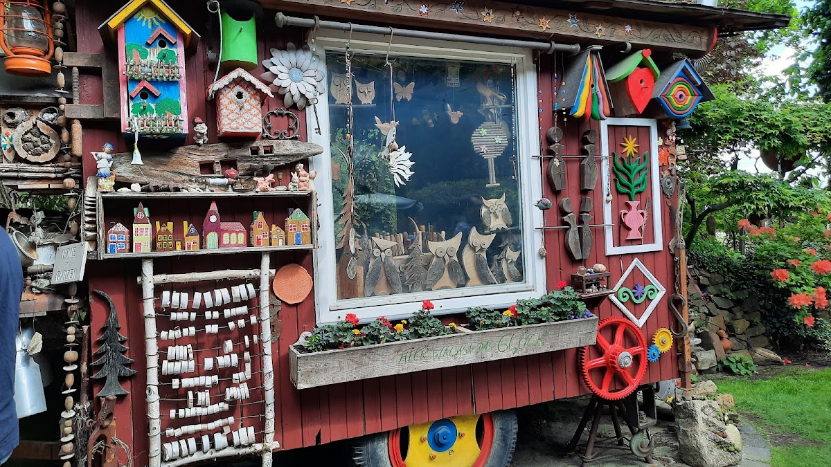 Dieser Wald mit Garten ist einen Abstecher wert! So liebevolle Details überall. Und die Besitzer empfangen Gäste offen und gastfreundlich. Wer Wald liebt und Freude an kleinen Kunstwerken hat, wird hier froh.
