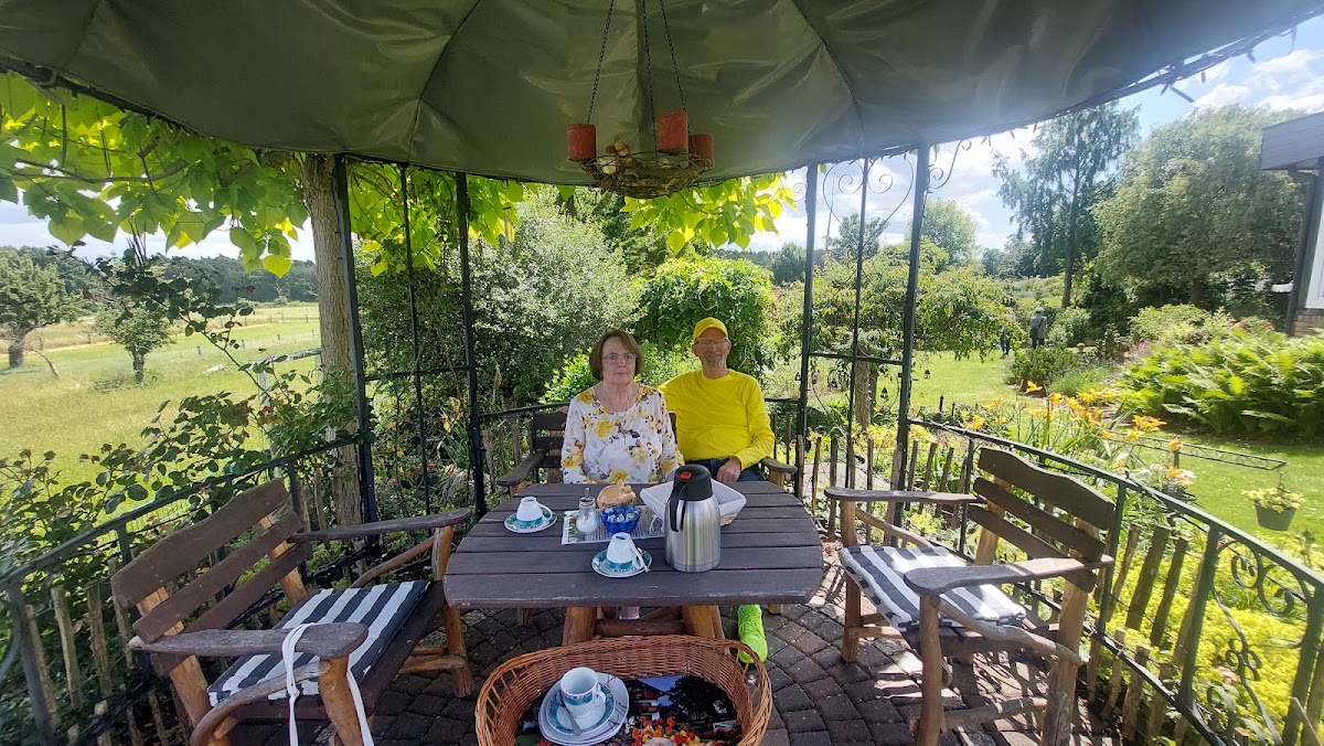 Wir waren zum "Tag des offenen Gartens" in Schönfeld. Toller Garten mit vielen schönen Sitzmöglichkeiten. Dort gibt es viele Ideen, die man mitnehmen kann.