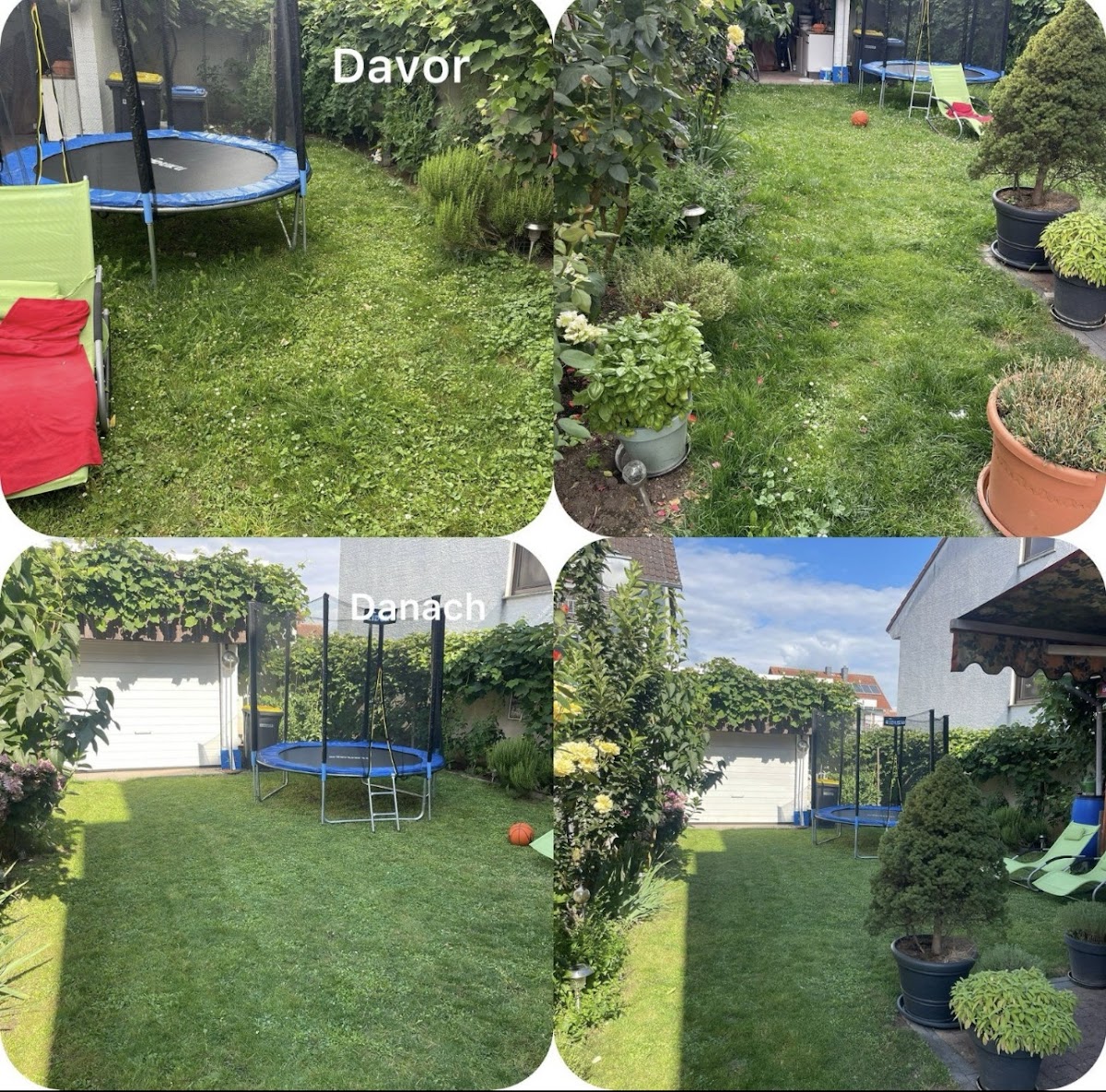 Ich habe einen Flyer in meiner Post erhalten, ich war zuerst etwas skeptisch, weil ich die Firma nicht kannte, aber ich sagte mir, ich sollte es mal ausprobieren. Der Gärtner hat sich die Zeit genommen, mir genau zu sagen, was alles kostet und wie lange es dauern wird. Ich kann nur sagen, dass der Garten meiner Großeltern noch nie so gut ausgesehen hat. Alles wurde wie versprochen erledigt, kein Detail wurde vergessen. Meine Großeltern können aufgrund ihres Alters nicht mehr im Garten arbeiten, aber endlich habe ich jemanden gefunden, der sich um ihren Garten kümmert und die Arbeit perfekt erledigt. Ich kann es nur empfehlen!!