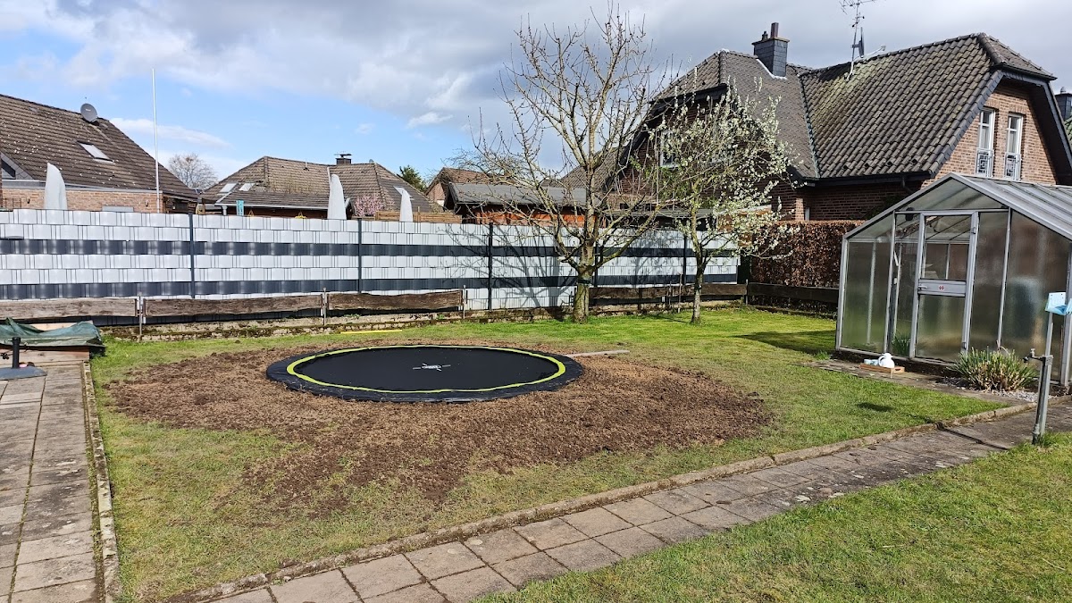 Niklas hat mit seinem Team unser neues Trampolin aufgebaut und in den Boden eingesetzt. Sehr ordentlich, sieht super aus und die ganze Erde hat er auch für uns entsorgt. Der kleine Bagger passt auch durch kleine Gartentore und sogar eine alte Baumwurzel hat er direkt mit entfernt. Dankeschön, wir sind super zufrieden!