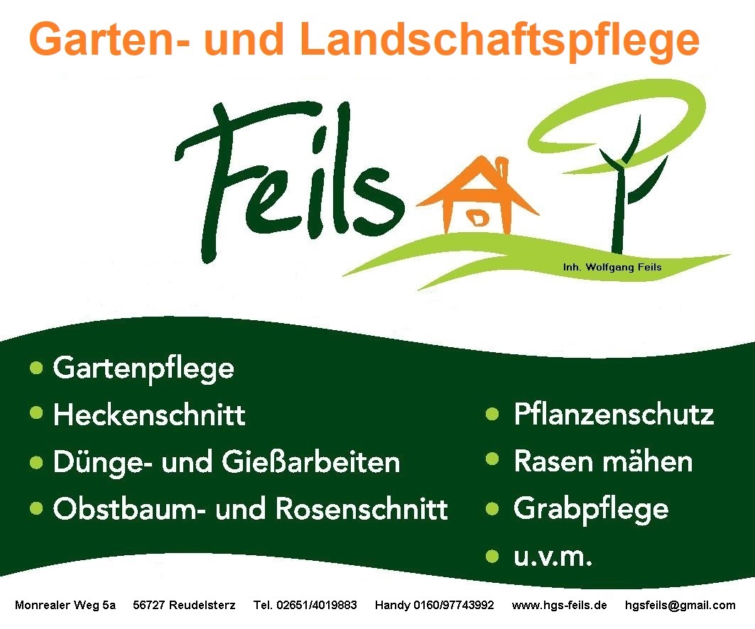 Sehr unzuverlässig- haben einen Gartenservice für die Zeit unseres Urlaubs in Auftrag gegeben. Am Tag der Schlüsselübergabe - obwohl morgens noch telefoniert hat Herr Feils den Schlüssel nicht mehr abgeholt. Wegen der kürze konnten wir leider keinen andere Firma mehr beauftragen.