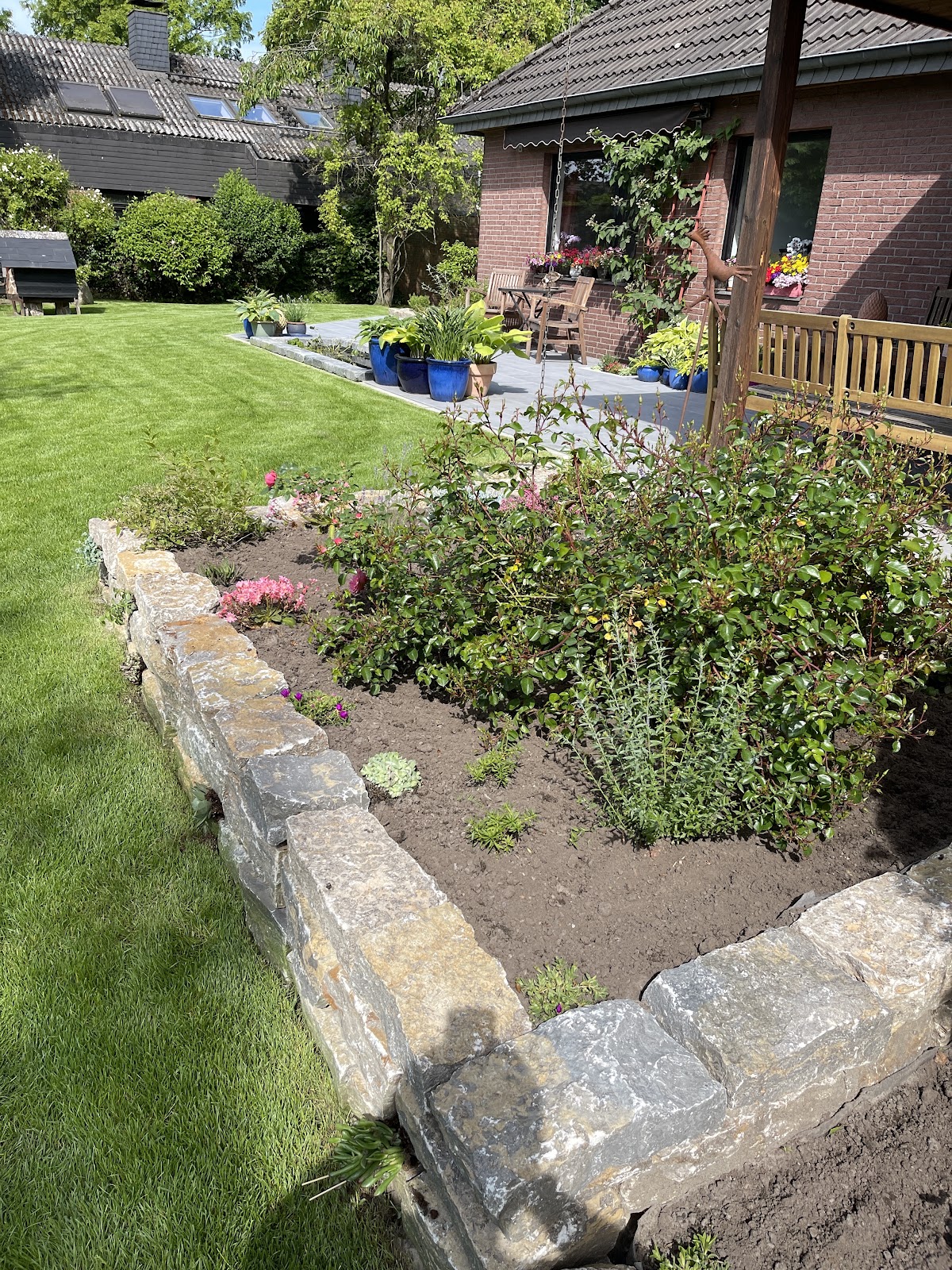 Das Team von Herrn Kocatas hat unsere Terrasse samt einem runden Treppenaufgang aus Natursteinen, sowie unsere Grundstücksaußenbegrenzung neu angelegt. Und zwar genauso, wie wir es uns in Gedanken vorgestellt hatten. Und tatsächlich: die Art und Weise wie fachkundig gearbeitet wurde, um unsere Wünsche zu realisieren war großartig! Wir nehmen die Dienstleistungen sehr gern wieder in Anspruch. Unsere Erfahrung entspricht daher eine Empfehlung, die wir mit nur fünf Sternen bewerten können, gern hätten wir auch mehr Sterne vergeben. Danke für diese gute, zuverlässige und pünktliche Arbeit!