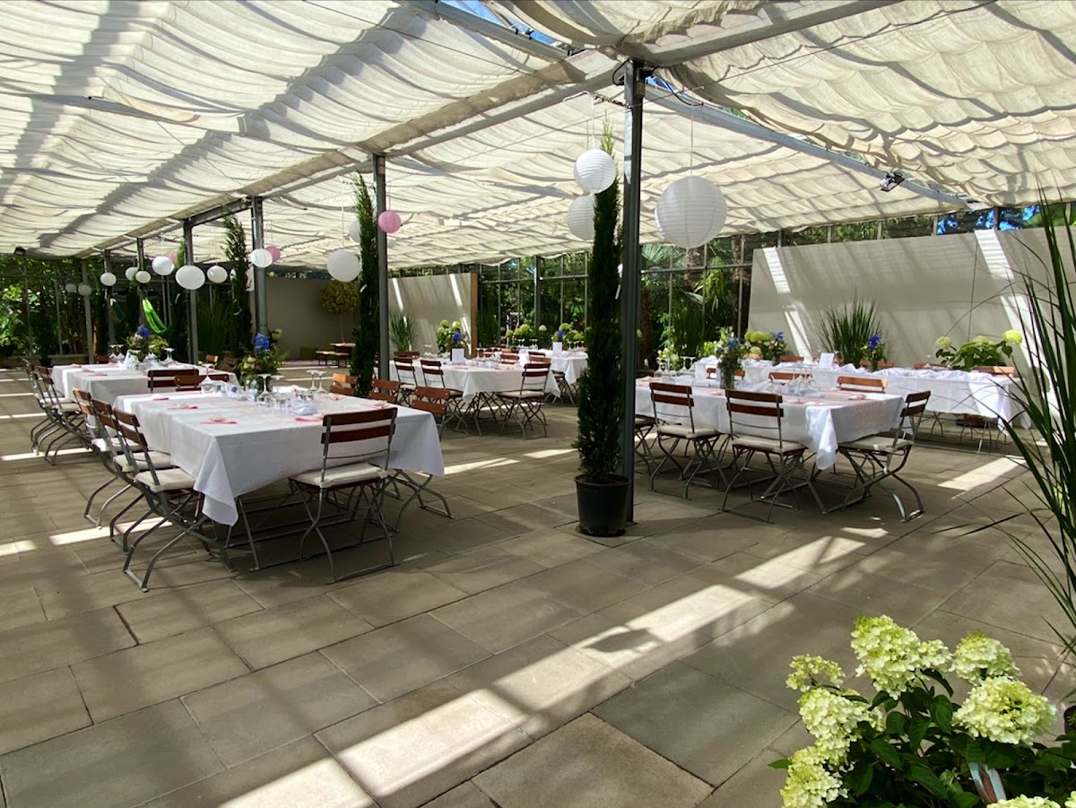 Für Hochzeiten und Veranstaltungen kann in der Baumschule Huben ein Gewächshaus gemietet werden. Die Atmosphäre mitten zwischen Olivenbäumen, Rosen und Sträuchern ist einmalig. Nach persönlichen Wünschen kann das Gewächshaus gestaltet werden. Bei gutem Wetter können weitere Außenflächen rund um das Gewächshaus für den Sektempfang genutzt werden. Ein wunderschöne Location für eine wunderschöne Hochzeit (www.martinaherma.de).