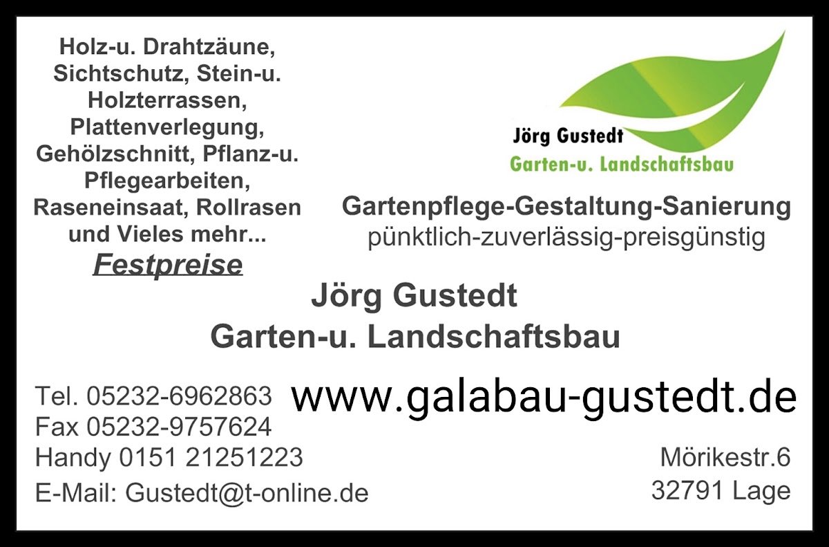 Nach der ersten Kontaktaufnahme zeigte sich sehr schnell das Herr Gustedt mit seinem Team der richtige für unsern Garten ist. Bis jetzt war das Team von Galabau Gustedt dreimal bei uns und wir können und haben ihn mit gutem Gewissen weiterempfohlen. Fachwissen und Kompetenz auf hohem Niveau. Jederzeit gerne wieder.
