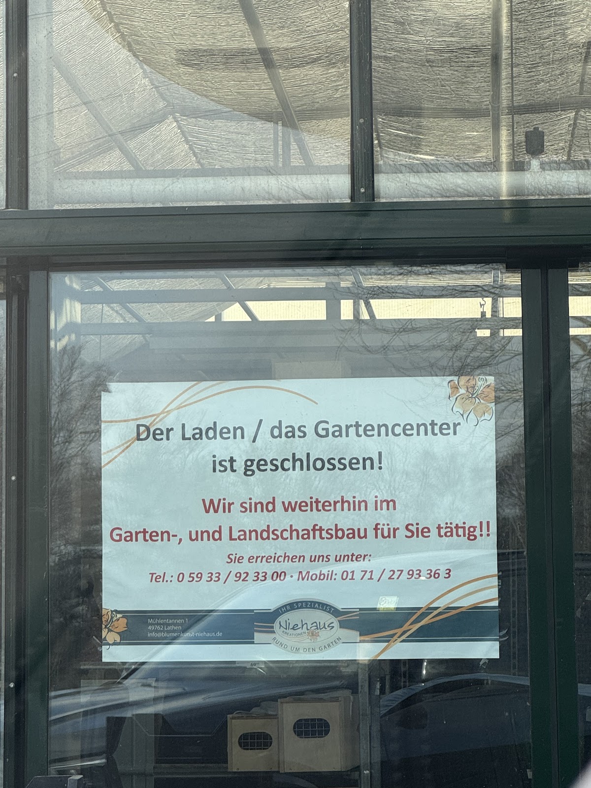 Wir waren heute zum ersten Mal hier und waren von Anfang an mehr als begeistert. Eine riesige Auswahl an Pflanzen, ob für draußen oder drinnen. Die Beratung war einfach spitze, der Mitarbeiter wusste, wovon er spricht. Und auch die Preise sind unschlagbar. Jeder, der schon einmal ein Blumenbeet bestücken wollte, der weiß, was Pflanzen kosten - aber bei Niehaus bekommt man dann auch noch sehr gute Ware und sehr viel für sein Geld. Wir werden auf jeden Fall wieder kommen. Vielen Dank!