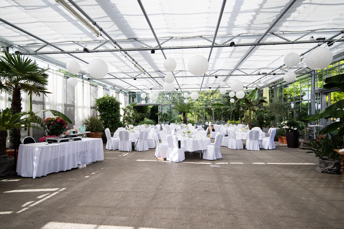 Wunderschöne Hochzeits-Location Der PlanGarten in Leinfelden war die Location unserer Hochzeit(sfeier) im Juni 2022. Sowohl die freie Trauung, als auch die anschließende Feier fanden hier statt. Die Besprechungen liefen zunächst coronabedingt per Telefon, im weiteren Verlauf in Präsenz oder kleinere Anfragen per Telefon oder Email. Dabei haben sie sich immer Zeit für uns genommen, waren sehr freundlich und sind auf unsere Wünsche eingegangen. Zudem konnten wir sehr problemlos (mehrfach) vorbeikommen und uns die Location genau ansehen, um die Trauung und Feier zu planen. Die Location bietet dabei neben einem schönen Gewächshaus für das Essen/als Tanzfläche/Regenlocation einen phänomenalen Außenbereich. In diesem gibt es große Grünflächen, einen Teich mit Holzplattform (schön für freie Trauungen), kleine Wasserspiele und viele nette Sitzgelegenheiten. Unsere Gäste waren begeistert von allem was es zu entdecken gab und haben die Zeit sehr genossen. Auch Familien mit (kleinen) Kindern konnten hier problemlos bis spät abends bleiben und nebenher spielen. Wir können die wunderschöne Location und das engagierte Eventteam sehr empfehlen!
