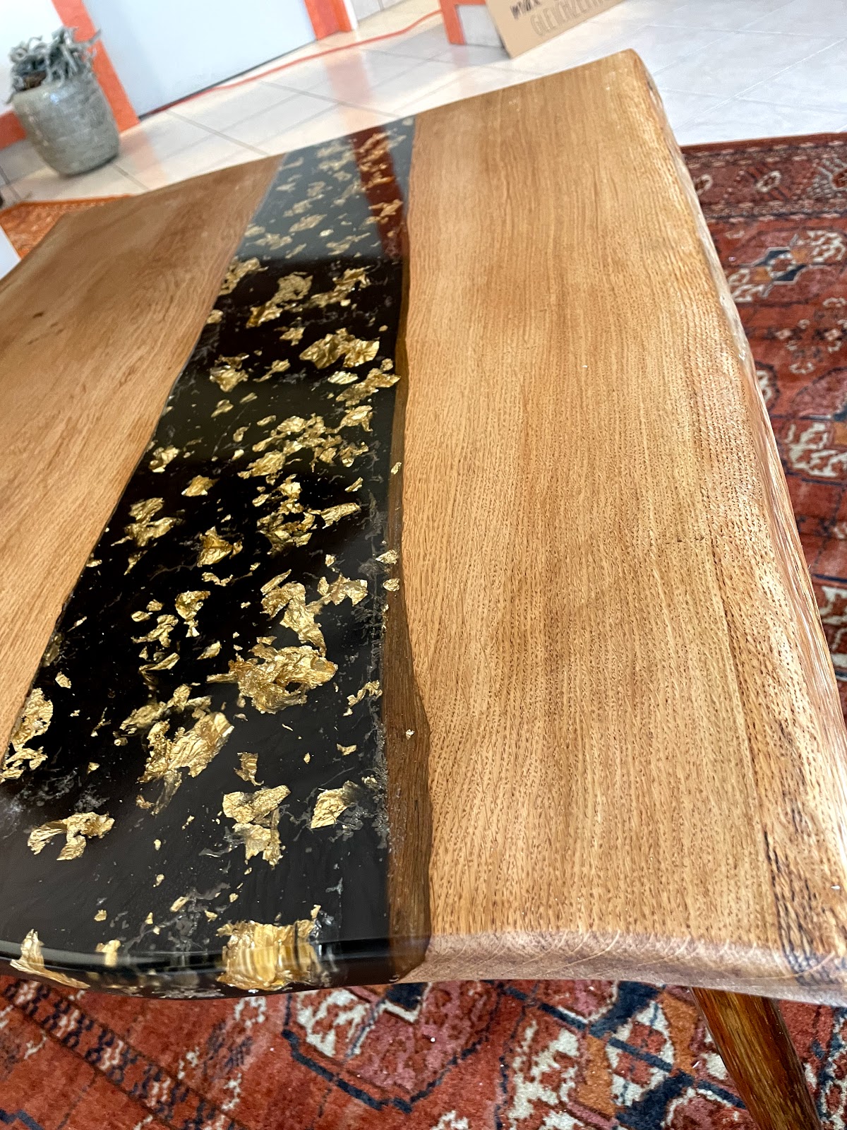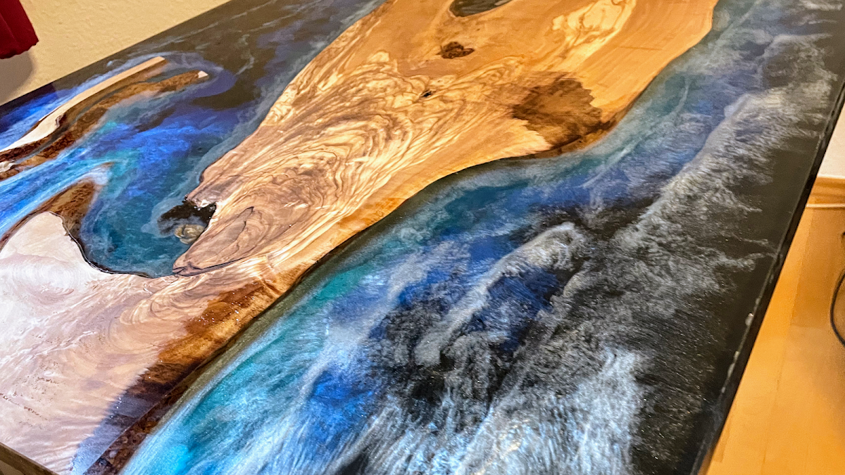 Der Tisch mit Epoxidharz für unsere Diele ist wirklich klasse geworden. Eigentlich fast zu schade etwas darauf zu stellen :-)