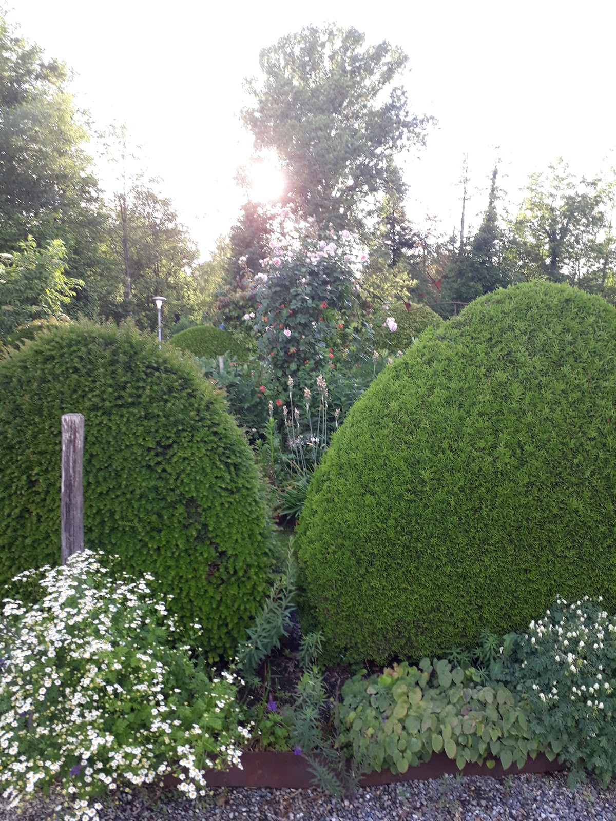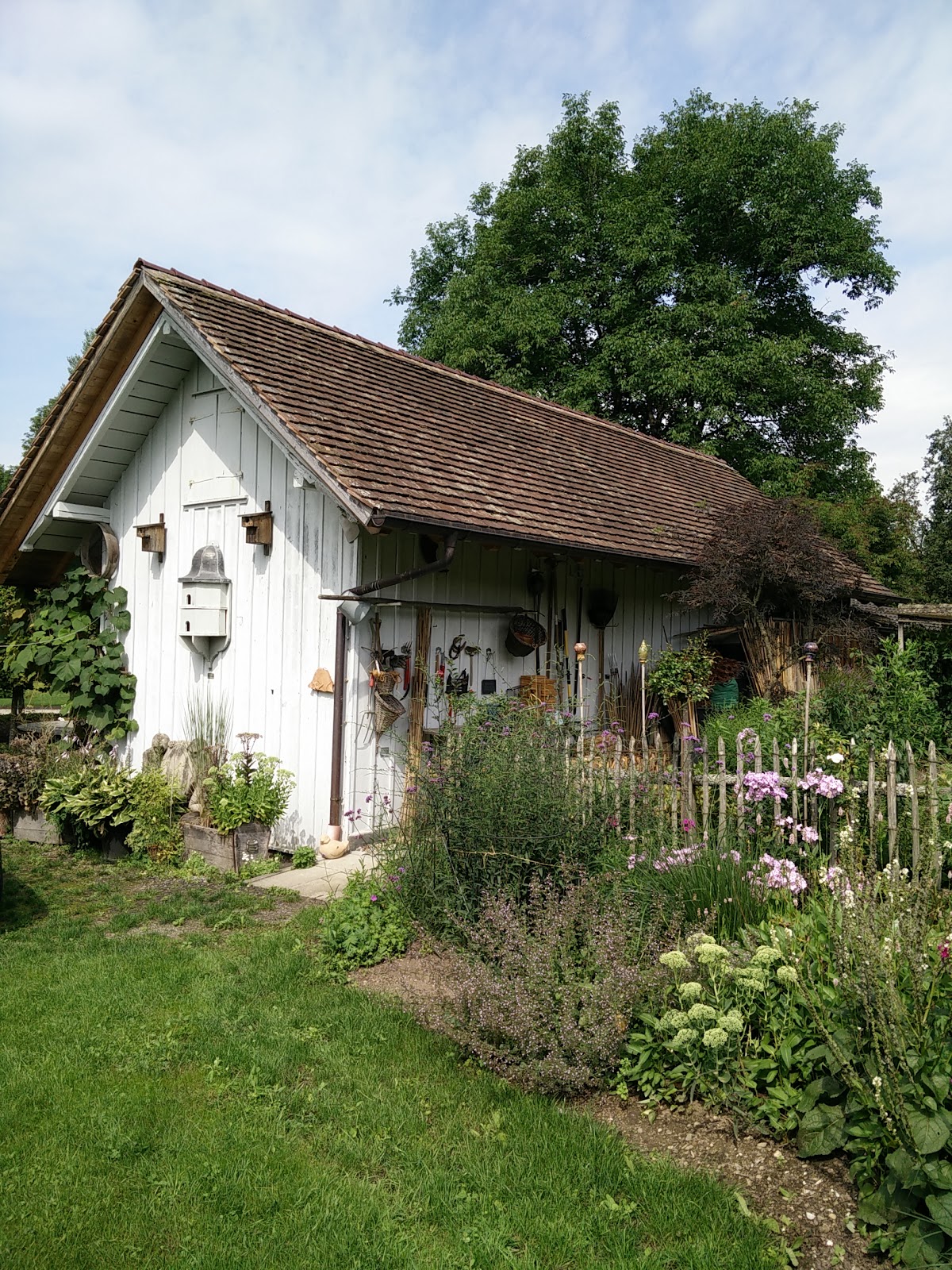 Herrn Seethalers Garten ist phantastisch! Hier sieht man wirklich viel Gespür für die kleinsten Details. Blumenbeete fügen sich schön an Hochstämme, unter einem majestätischen Walnussbaum kann man verweilen. Sanftes Kicker von Hühnern aus dem Hintergrund rundet das Bild und das Wohlfühlklima ab. Hier findet man Pflanzen, die man vielleicht in seinem ganzen Leben noch nicht gesehen hat. Sie inspirieren auf jeden Fall, da sie auch in unserem oft kalten deutschen Klima gedeihen. Sicherlich ist der nahe Bodensee hierfür auch förderlich. Die Gartenanlage ist auf jeden Fall eine Reise bzw einen Besuch wert. Vielleicht hat man ja das Glück und kann die Ferienwohnung dort buchen. Ausser in England habe ich nie so präzise und schön geschnittene Pflanzen gesehen. Und dies ohne dass der Garten zu steril wirkt. Ganz im Gegenteil: Hier dürfen auch Bienen in Beeten, wie man sie von früher kennt, ihre Kreise ziehen und jeder ist willkommen. Toll -wir kommen wieder!