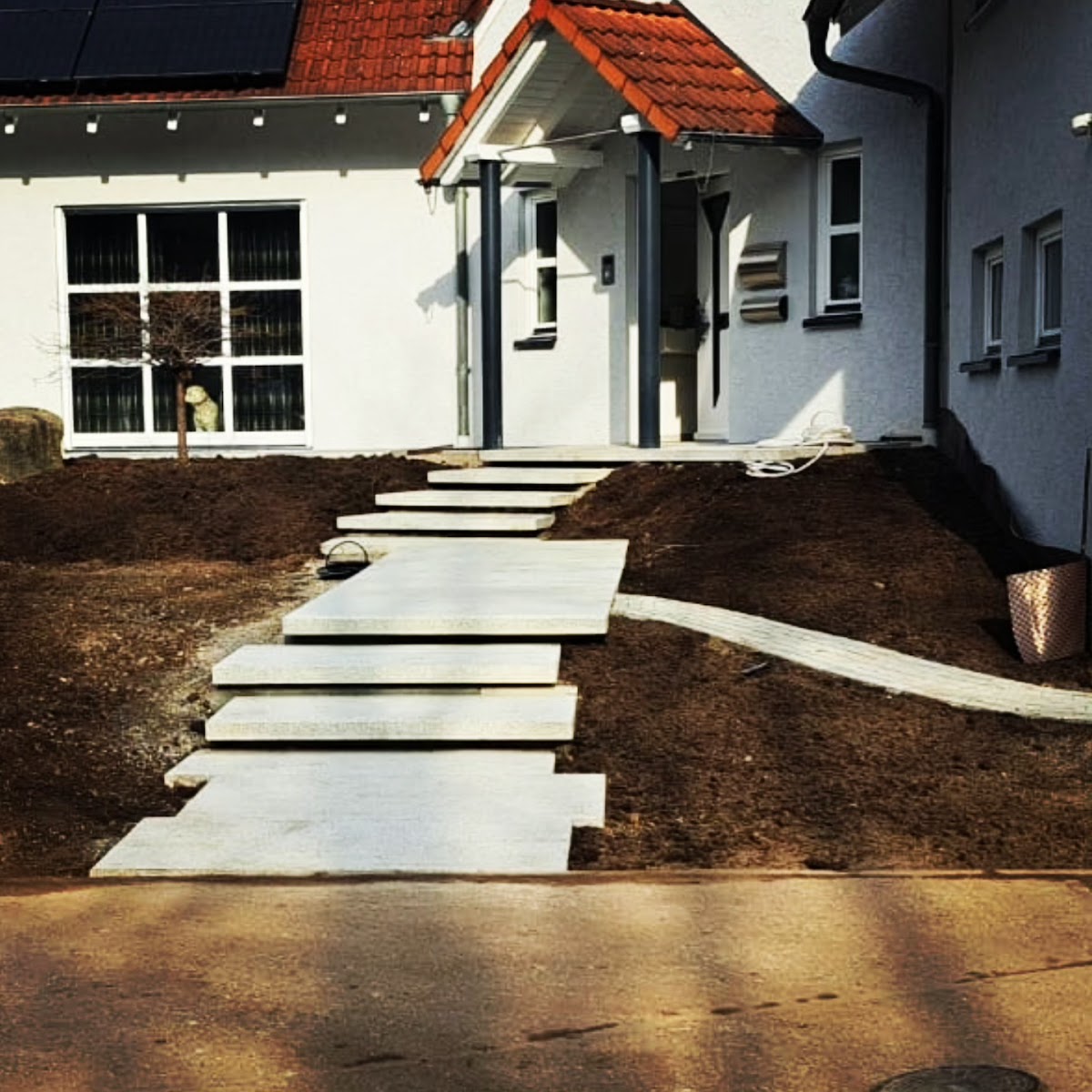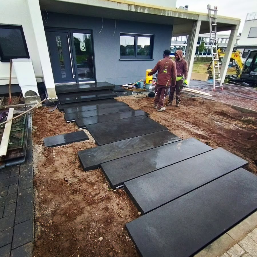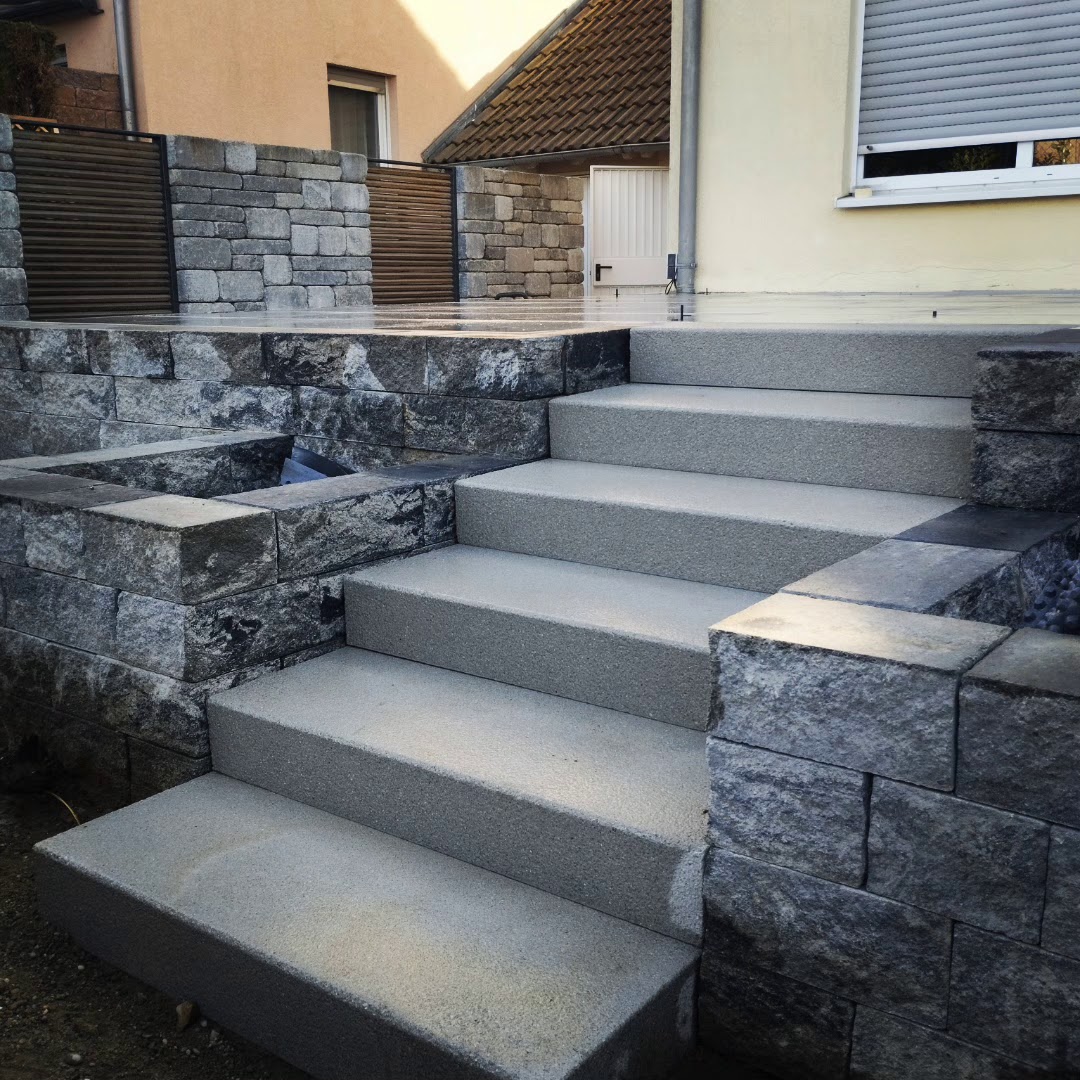 Vielen Dank an Tobi und sein Team für die tolle Arbeit. Wir sind mehr als zufrieden und dankbar für die tolle Beratung und Planung im Vorfeld, die Arbeit und das Endergebnis. Es ist ein wunderschöner Garten mit Mauerscheiben, einer Terrasse und Treppe geworden sowie eine Terrasse im Lichtschacht, Pflaster in der Einfahrt und eine mega Eingangstreppe mit Mauerscheiben und Basalt. Wir danken euch! :)