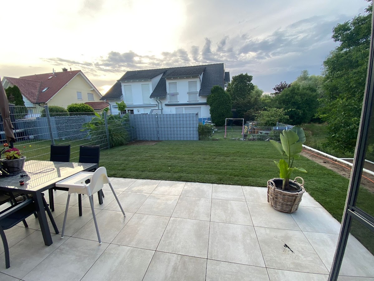 Super Arbeit. Der Garten wurde komplett neugestaltet. Aus einer wilden Unkraut-Wiese mit Gestrüpp und altem Zaun wurde ein schöner Garten mit Sichtschutz, Sitzflächen, Beschattungen und Beplanzungen gestaltet. Alle Mitarbeiter waren immer sehr freundlich und haben ordentlich gearbeitet. Punkte die während der Gestaltung auffielen wurden gemeinsam besprochen und tolle Lösungen entwickelt. Entfernung: Alter Maschendrahtzaun, Gestrüpp und abgestorbene Bäume Neu: +Walnussbaum in Form gebracht +Bewässerungssystem für Rasen und Pflanzen +Mähroboter +Sitzfläche + Gartenhaus +Schaukelfläche für die Kinder +Rollrasen + Zaun +Bepflanzung bei Kellerfenster +Bepflanzung entlang Zaun mit Pflanzen +neuer Baum im Vorgarten Auch bei Problemen die später auftraten (Mähroboter fuhr nicht mehr) gab es schnelle und unkomplizierte Hilfe. Klare Empfehlung