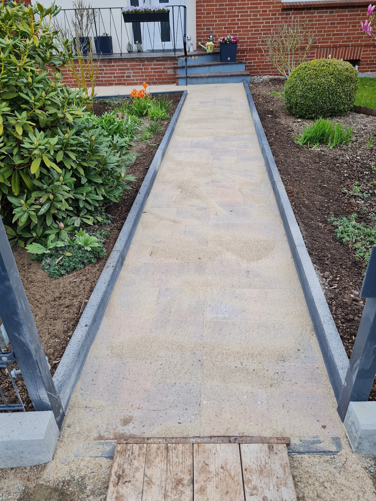 Heute wurden ca. 14 qm Gartengehweg neu angelegt. Sehr sauber und immer mit uns abgestimmt was gemacht werden soll. Ich kann seine Arbeit nur weiterempfehlen.und zu einem Fähren Preis!