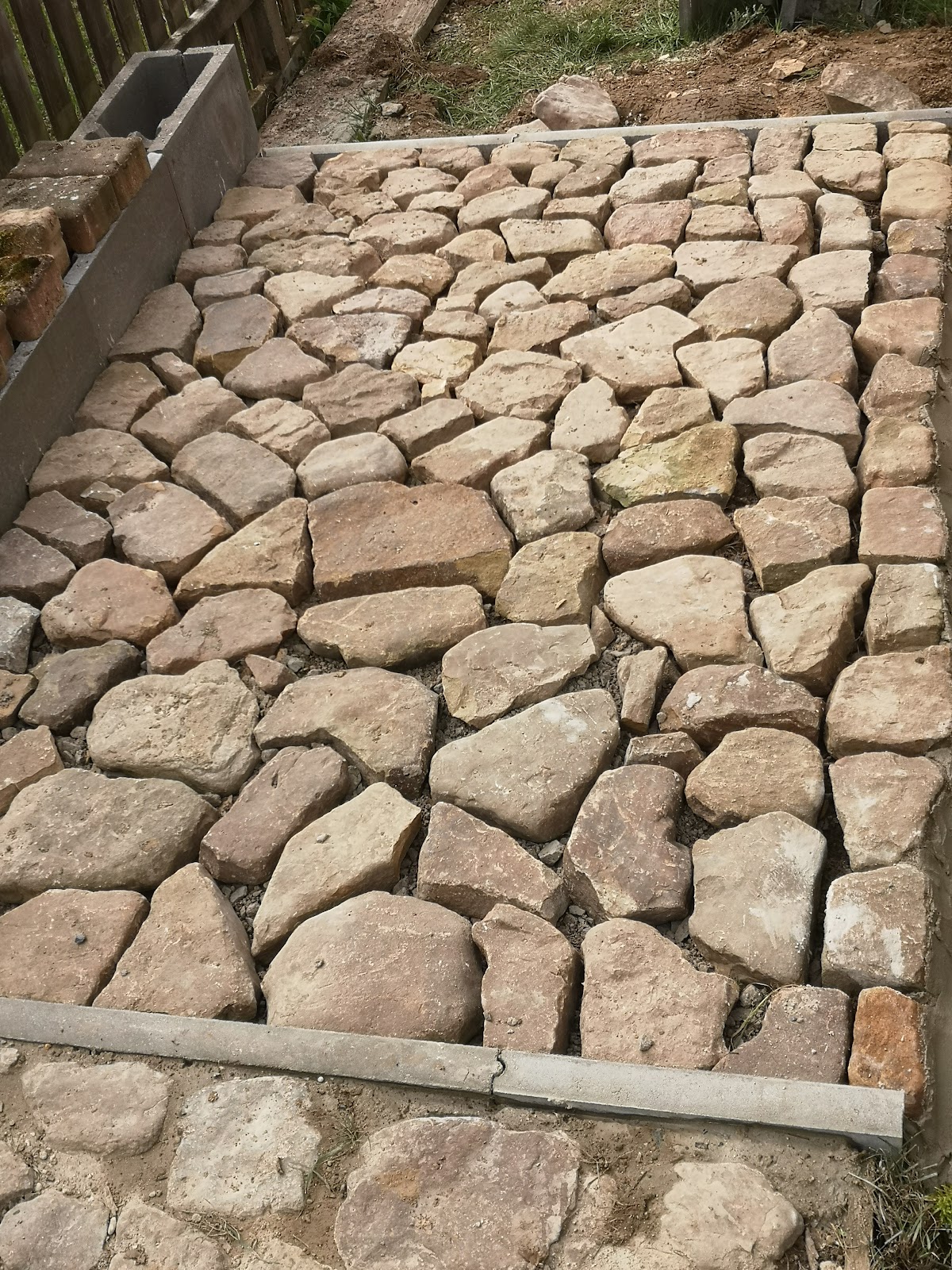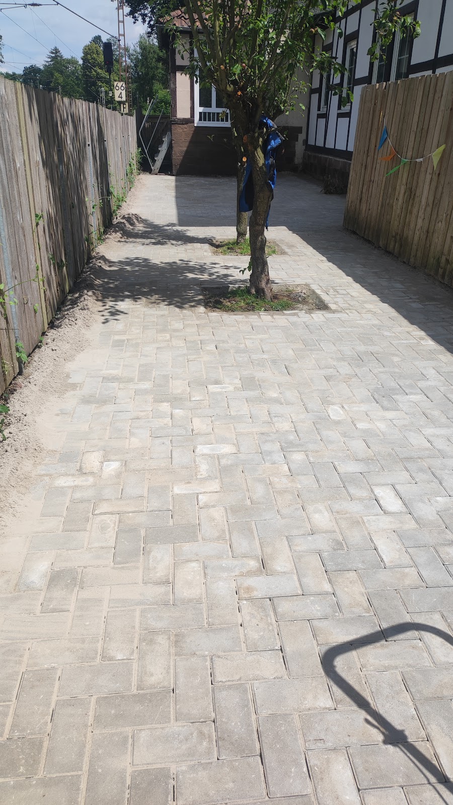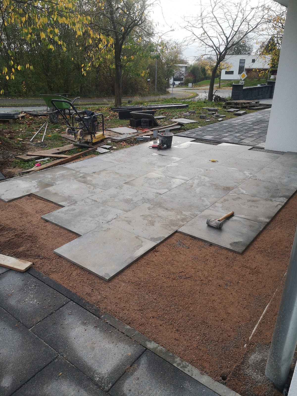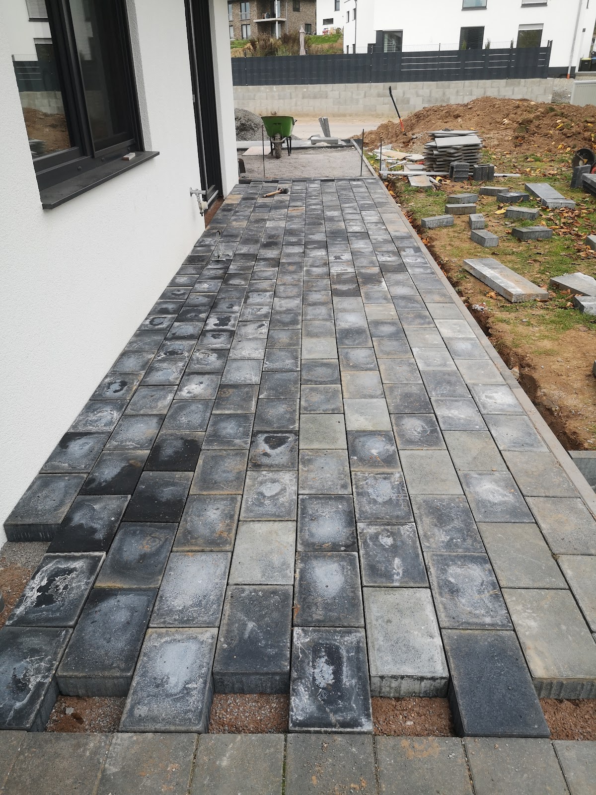 Das erste Foto zeigt das Foto was vom Handwerker gemacht wurde, das 2. ist vom Endergebnis. Betonreste vom einschlemmen des vorderen Bereiches. Gerade jetzt wird die dortige von ihm erstellte Seitenwand aus Schalsteinen von einem Bauunzernehmer entfernt, da Tiefe und Grundfunderment mehr als mangelhaft sind und mit den Jahren zu Problemen führer würden. War zu Anfang wirklich sehr zufrieden. Er hat den Fussweg im Eingangsbereich Top verlegt. Aber alles danach ......