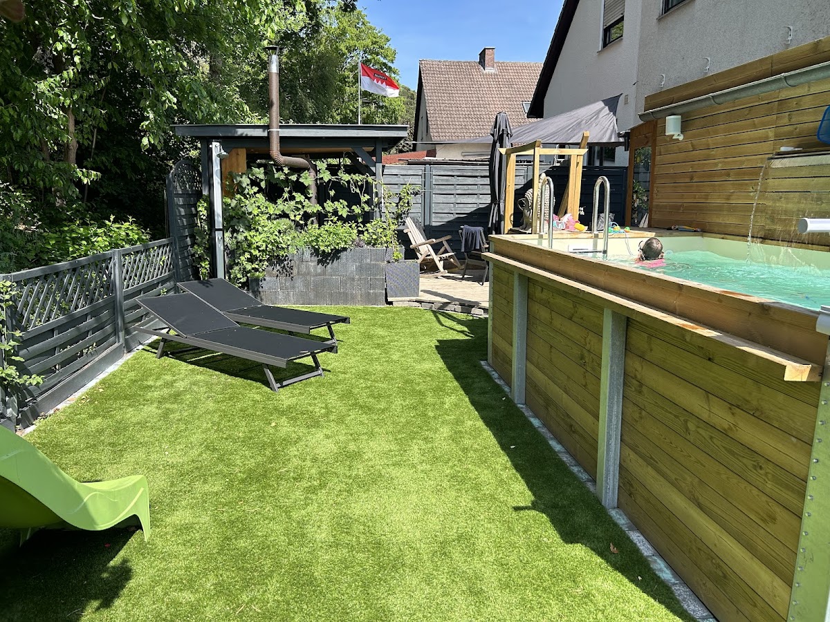 Für unsere rollstuhlfahrende Tochter mussten wir uns etwas überlegen, sodass sie gut über den schlechten Boden und Rasen zur Terrasse fahren kann. Wir entschlossen uns für einen Kunstrasen und suchten einen Landschaftsgärtner der den Rasen verlegt. Gesucht.... gefunden....Glückstreffer. Vielen Dank Maik für die super Beratung, Verlegung des Kunstrasens, Randsteinsetzung, pünktliches sauberes professionelles arbeiten, super freundlich und super nett........ Danke es hat Spaß gemacht und wir sehen uns wieder. Die Bilder sprechen für sich.