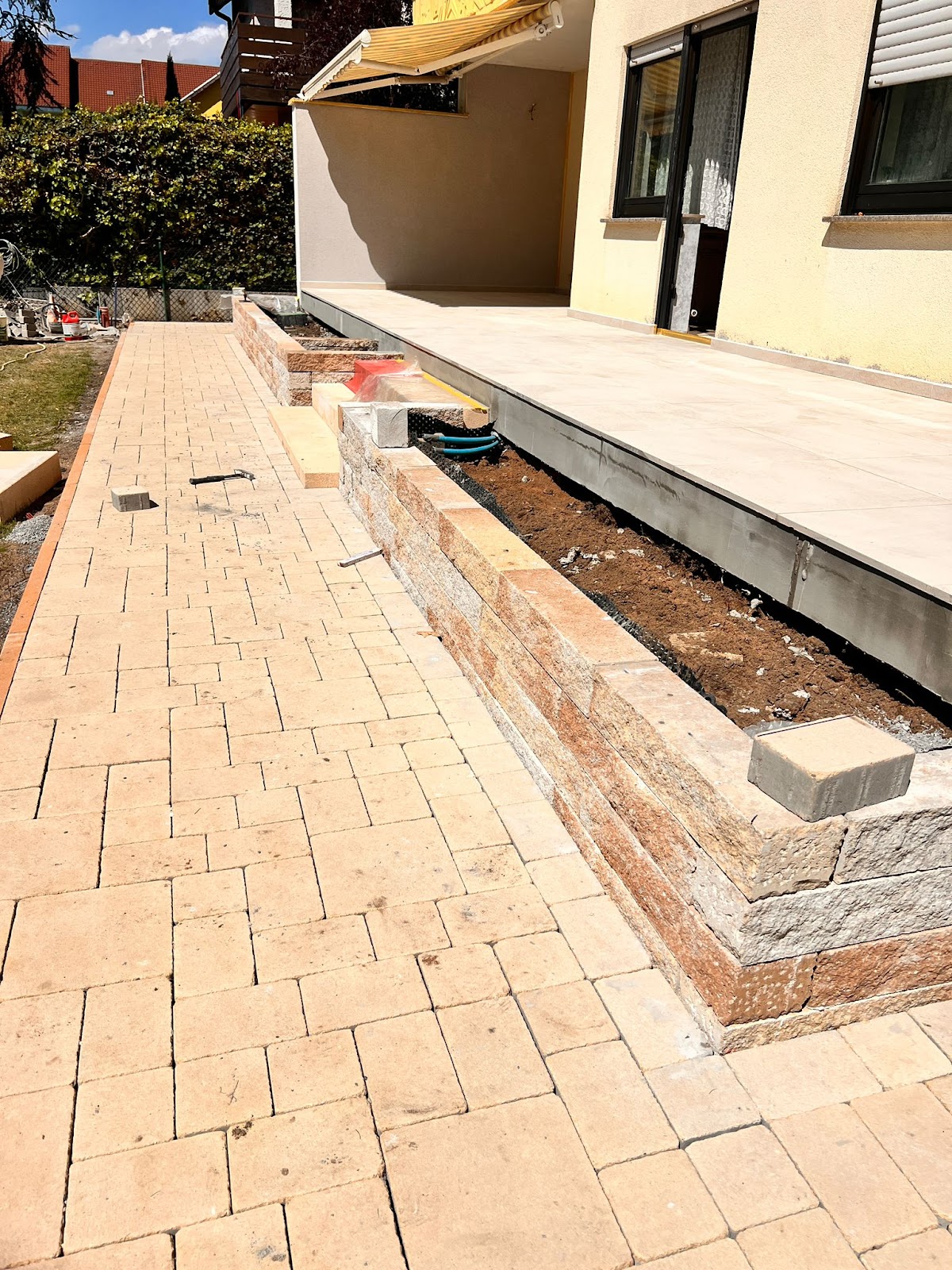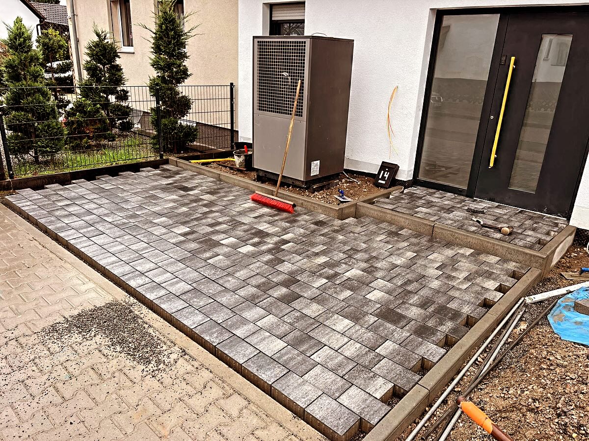 Die Arbeiter haben in zwei Wochen den ganzen Hof 165 qm, 30 cm dicken Beton abgerissen und danach fachgerecht mit Schotter, Split, Randsteine und 21 Paletten Anthrazit Pflastersteine gepflastert. Bei den Arbeiten haben wir auch kurzfristig eine Terrasse eingeplant und umgesetzt😀 Das Team ist professionell und gut organisiert. Immer wieder 👍