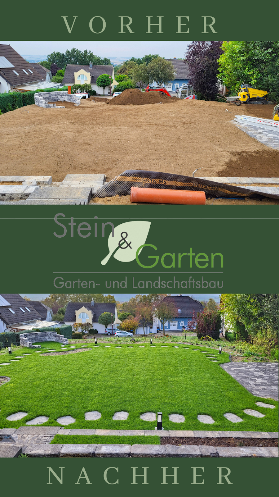 Von der kompetenten Beratung bis zur professionellen Ausführung sind wir sehr zufrieden. Das Team ist sympathisch und zuverlässig, Absprachen werden eingehalten, die Baustelle wird ordentlich hinterlassen. Die Arbeiten werden effizient und fachgerecht durchgeführt. Es ist immer jemand für Rückfragen erreichbar gewesen, es wird transparent kommuniziert was, wie und wann gemacht wird. Wir werden die Firma Stein & Garten jederzeit wieder beauftragen und weiterempfehlen 👍