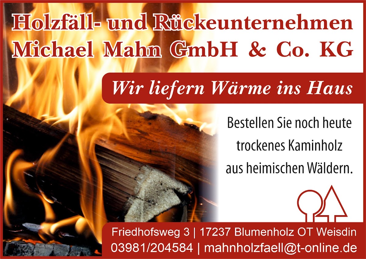 Ich bestelle sei vielen Jahren mein Brennholz bei Fam. MAHN in Weisdin Ich bin super zufrieden damit, das Beste Holz der Umgebung Schnelle und zuverlässige Lieferung und immer sehr freundlich Danke und weiter so
