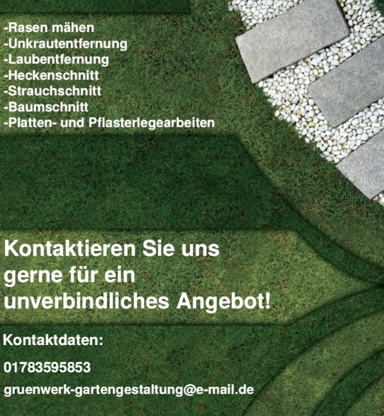 Wir haben die Firma Grünwerk für den Grünschnitt und Rasen mähen eines ca. 2000 m2 Grundstücks beauftragt. Saubere und sehr zuverlässige Arbeit. Preis Leistung ist hier hervorragend. Jederzeit gerne wieder.